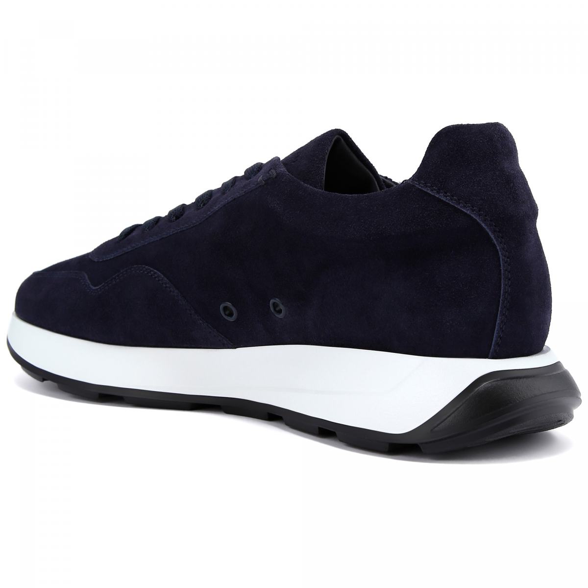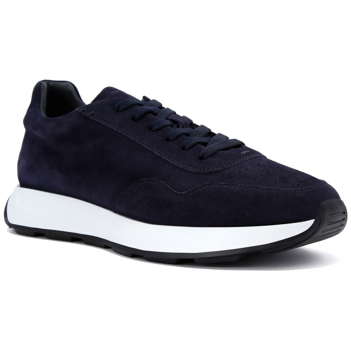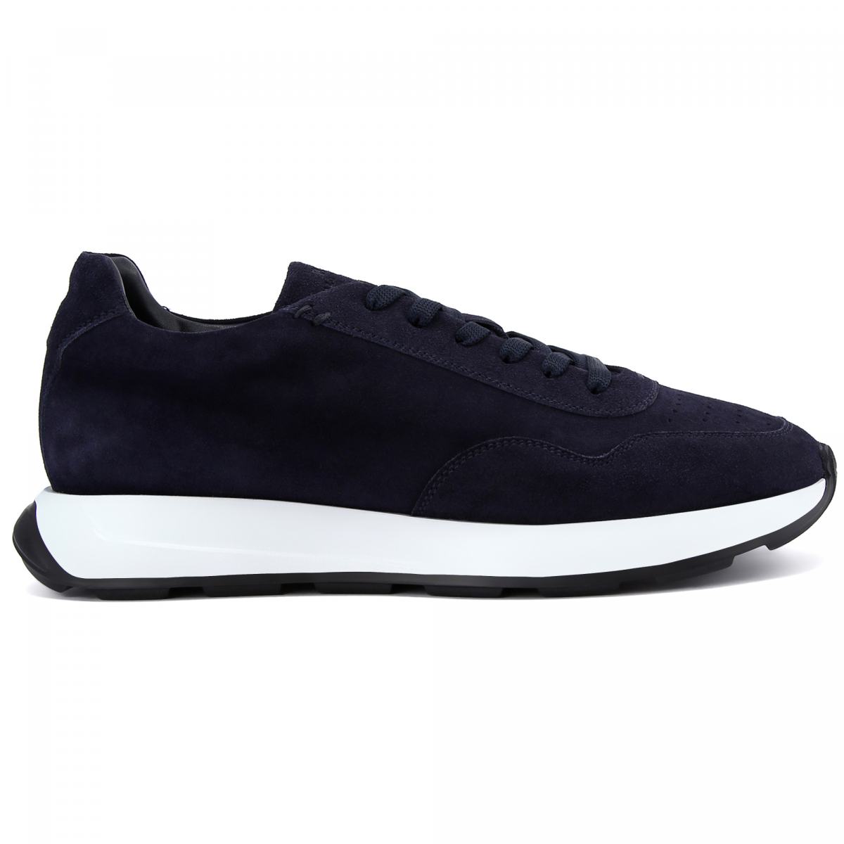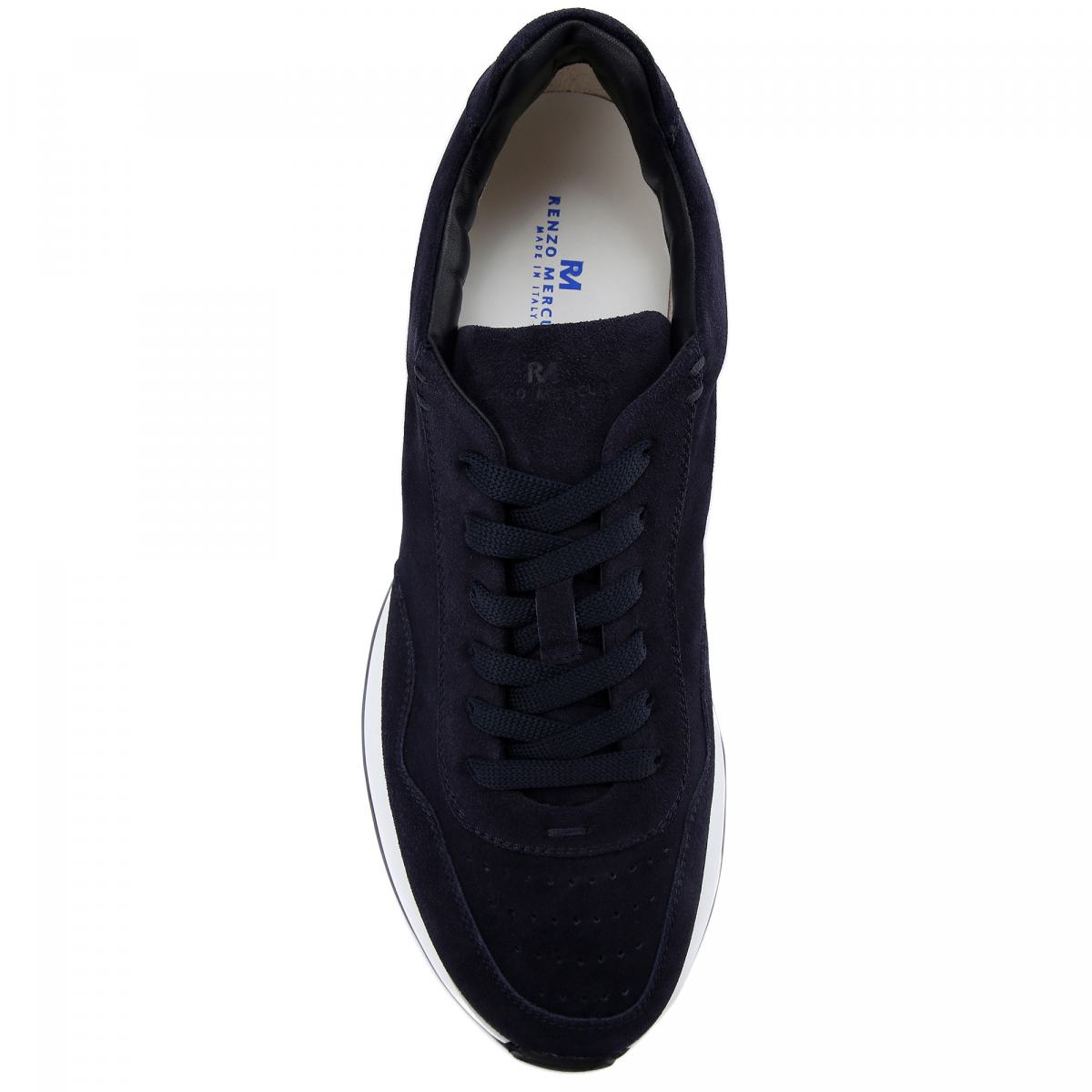 Кроссовки от Renzo Mercuri из натуральной замши в тёмно-синем цвете. Кроссовки из замши идеально подойдут для городского стиля в теплое время года. Верх выполнен из натуральной замшевой кожи, внутри подкладка и стелька из натуральной кожи. Дизайн пары дополняет спортивная подошва из резины белого цвета и текстильная шнуровка в цвет. Благодаря сдержанному дизайну, пара одинаково уместно смотрится как с джинсами, так и с брюками в стиле casual.