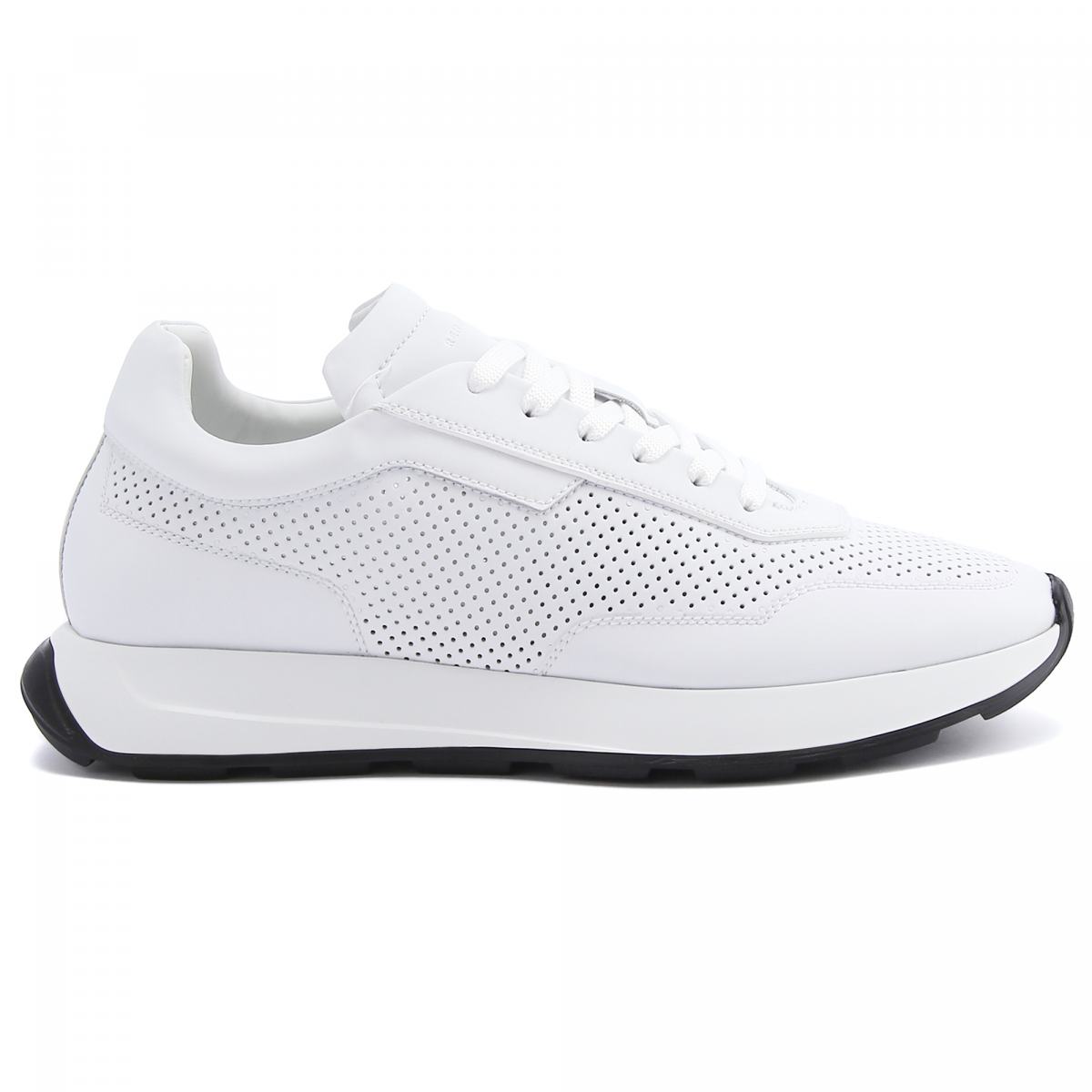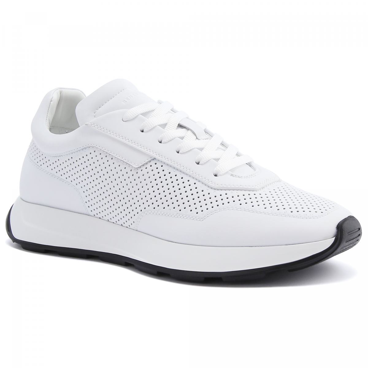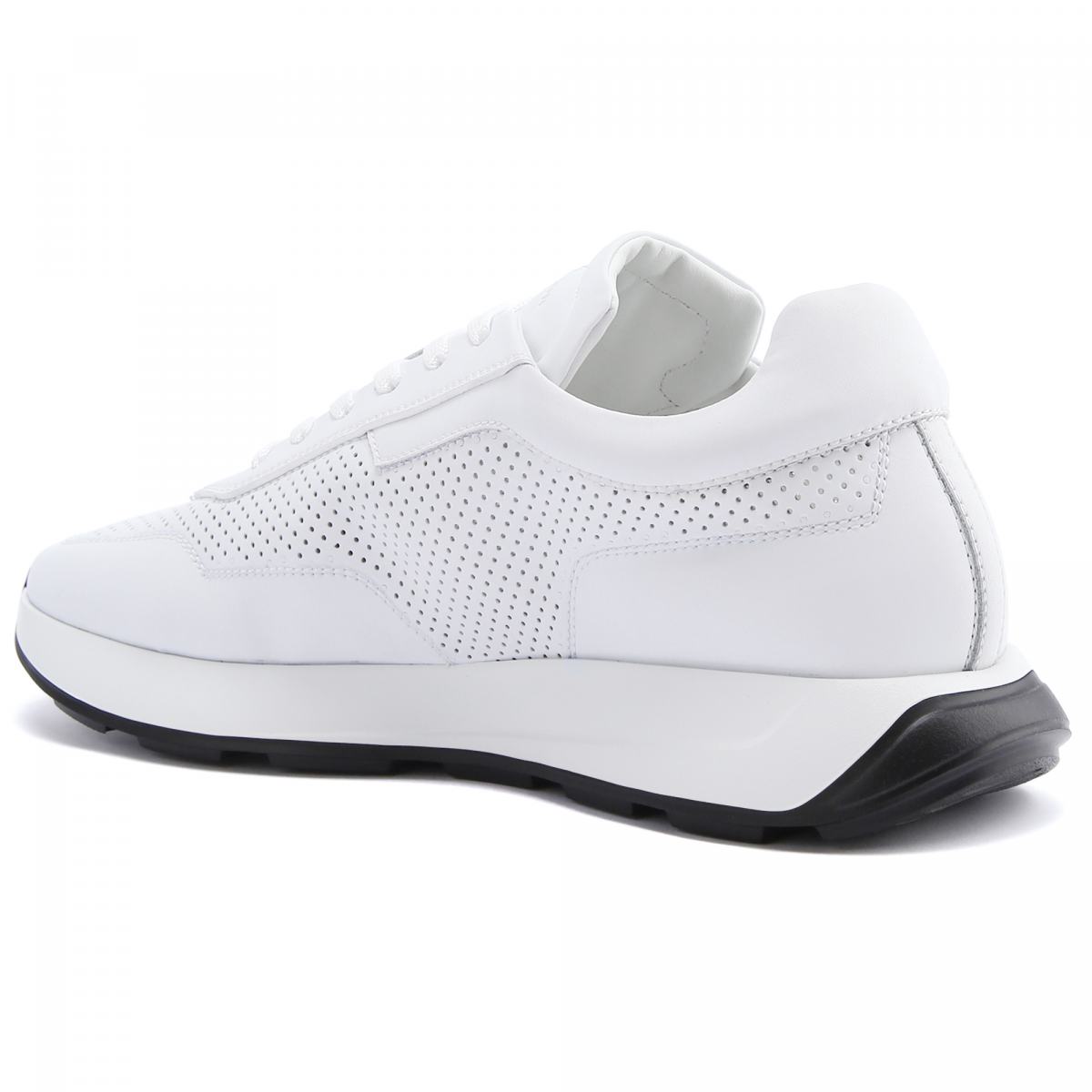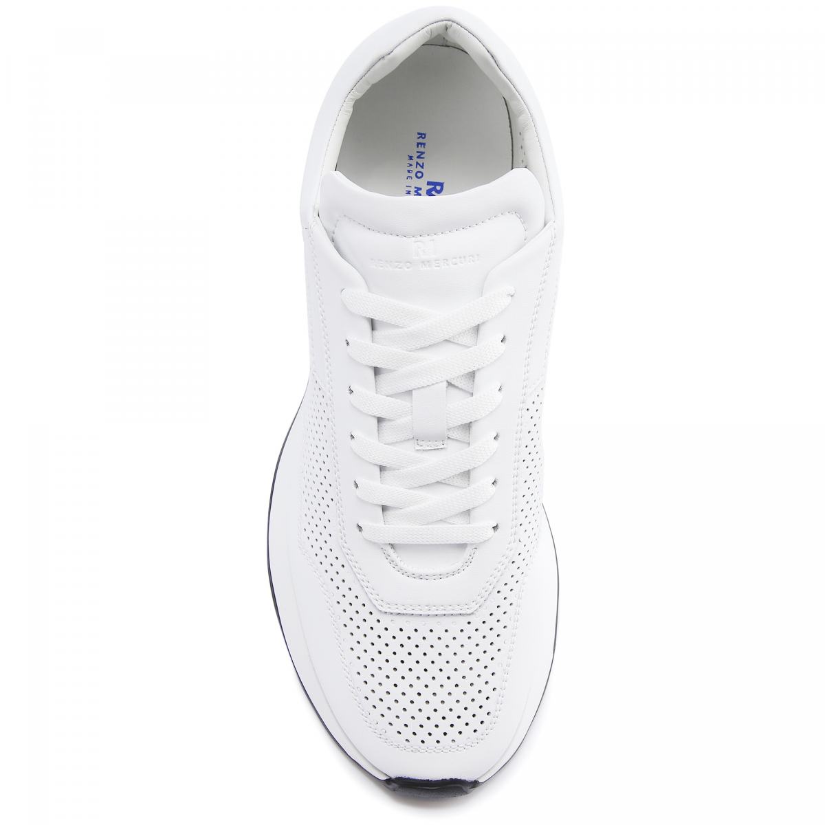 Белые кроссовки из натуральной кожи от Renzo Mercuri. Базовые белые кроссовки подойдут к любой одежде и ситуации, они универсальны и практичны. Дополнительную вентиляцию обеспечивает сквозная перфорация на коже. У модели текстильная шнуровка, резиновая подошва белого цвета, кожаная подкладка и стелька.
