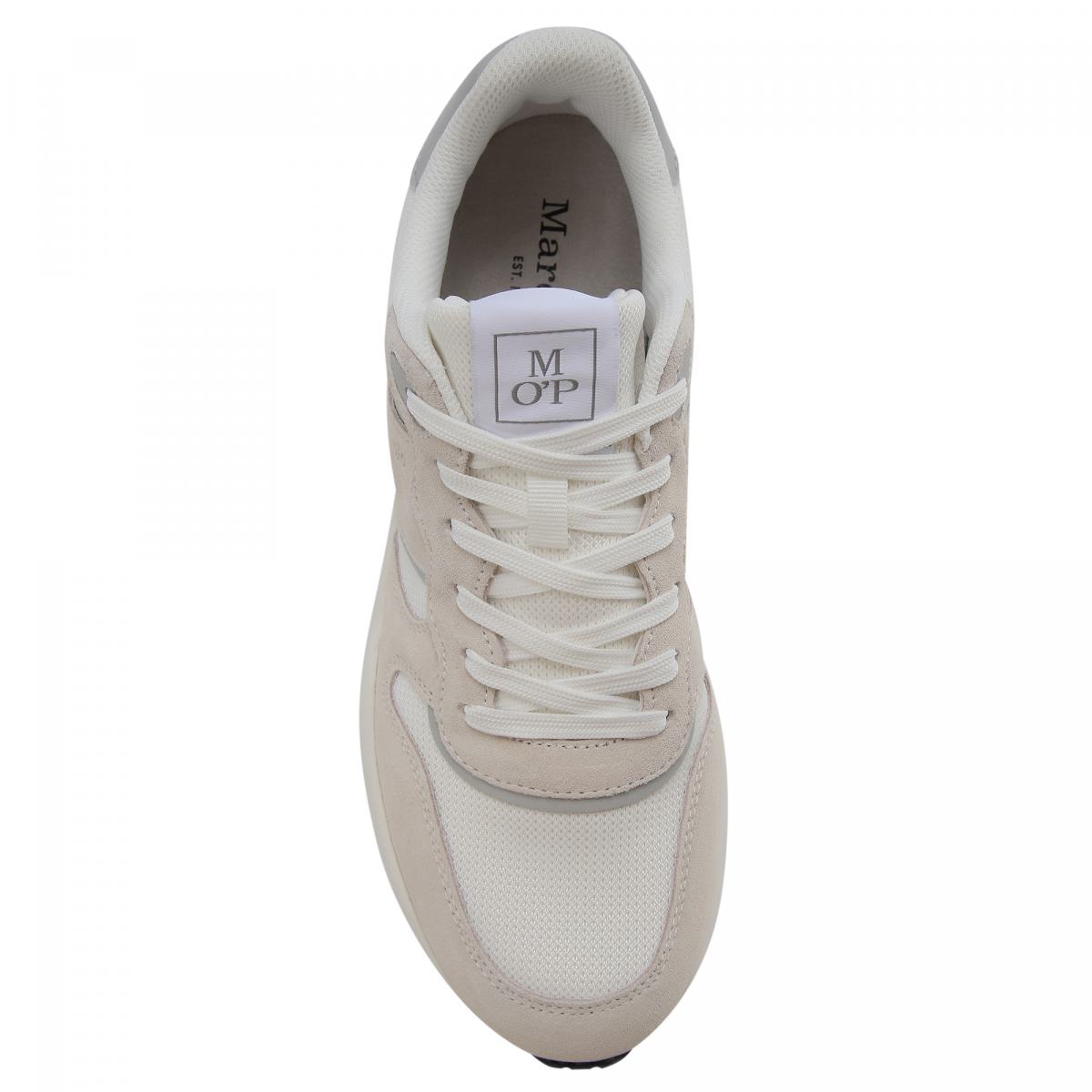 Бежевые кроссовки от Marc O’Polo. Кроссовки изготовлены из высококачественной смеси материалов: сочетания элегантной воловьей кожи, дышащей сетки из переработанного ПЭТ и прочного полиуретана. Модель с дышащей внутренней подкладкой из переработанной сетки. Съемная стелька из микрофибры и пены с эффектом памяти обеспечивает дополнительный комфорт. Двухцветная подошва со встроенным спойлером обеспечивает уверенность в каждом шаге.