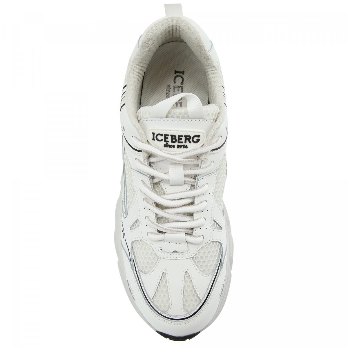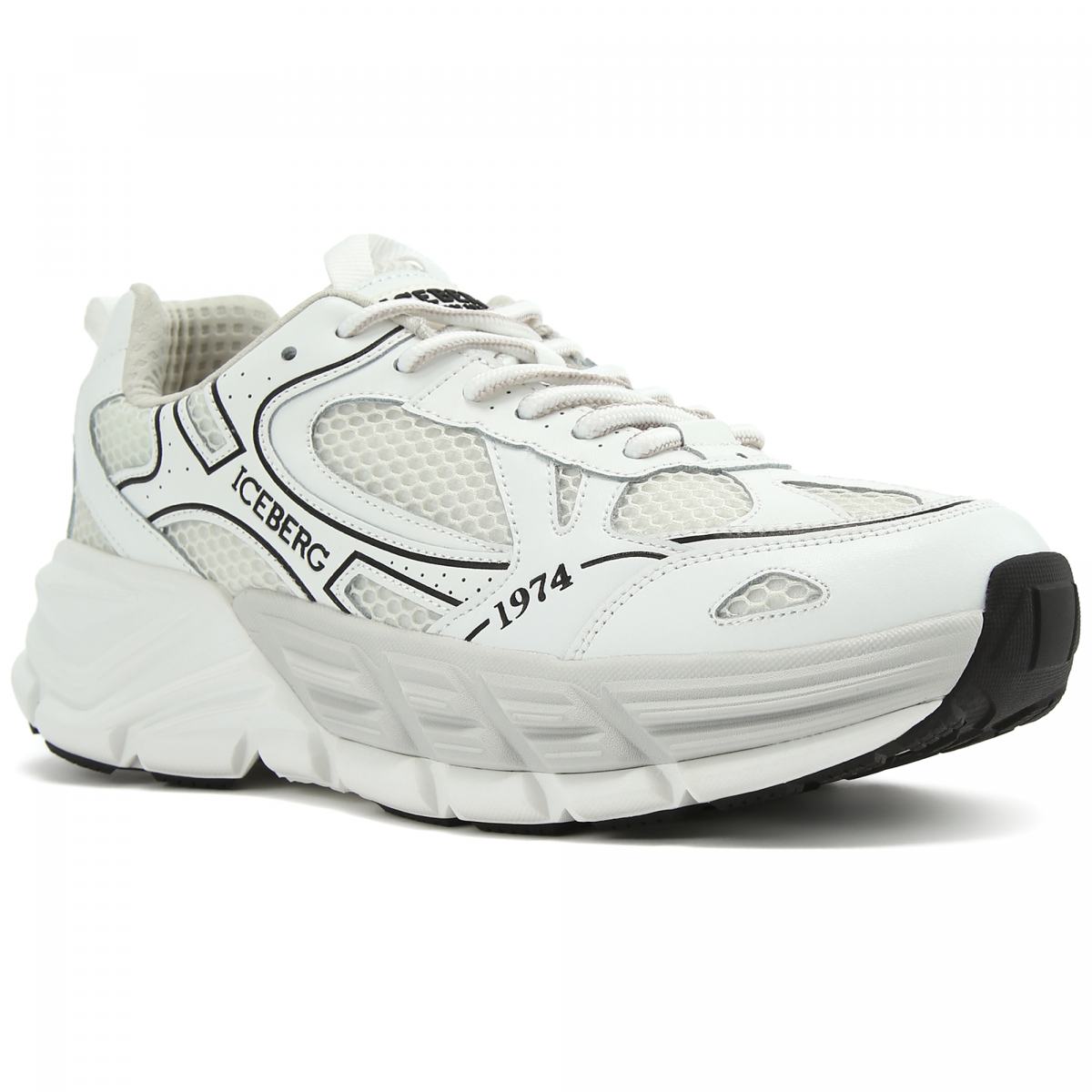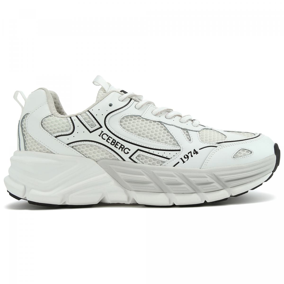 Кроссовки в белом цвете от Iceberg. Современная элегантность. Белые кроссовки, выполненные из уникального сочетания кожи и сетки, с фирменным логотипом Iceberg, напечатанным на внешней стороне обуви, впишутся как в повседневный так и в спортивный образ. Нескользящая подошва Vibram® гарантирует надежное сцепление с различными поверхностями, обеспечивая комфорт и безопасность во время ходьбы. Подкладка и стелька выполнены из текстиля.