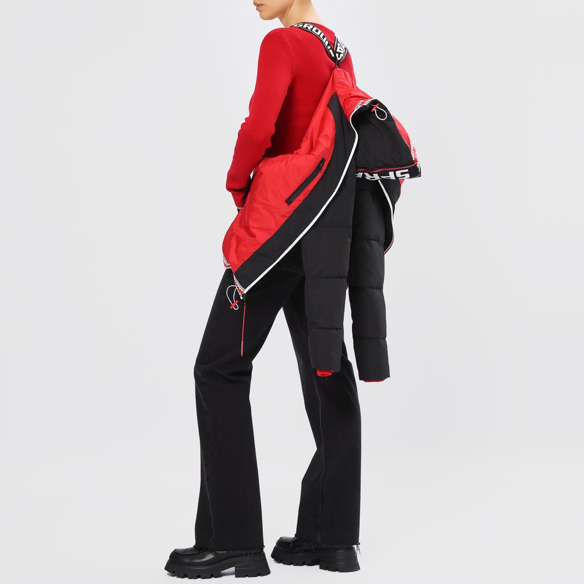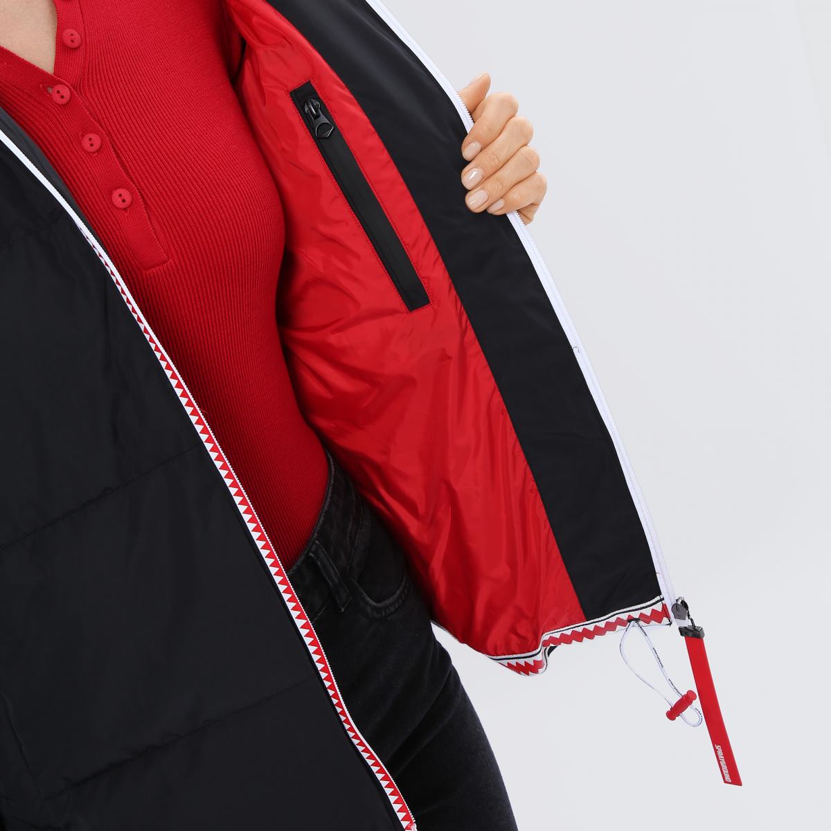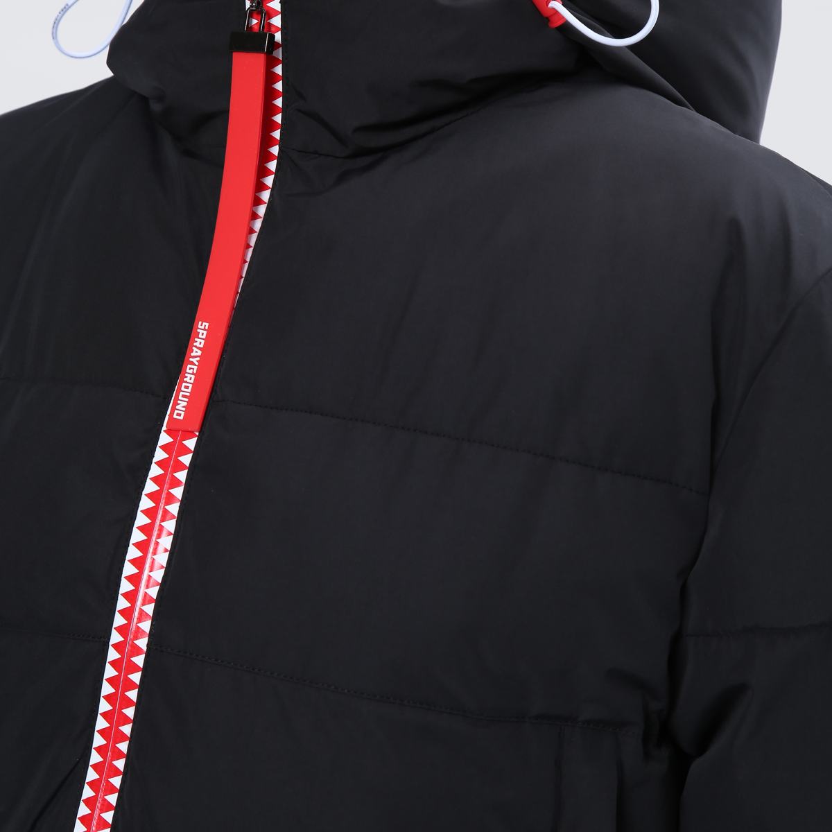 Куртка из плотной текстильной ткани от SPRAYGROUND. Куртка в черно-красном цвете выполнена из плотной ткани, с капюшоном на кулиске и застёжкой на двойную молнию. Для защиты от ветра продуманы эластичные манжеты и кулиска на подоле. Капюшон украшает фирменный принт в виде пасти акулы - символ бренда SPRAYGROUND. По бокам расположены вместительные карманы.