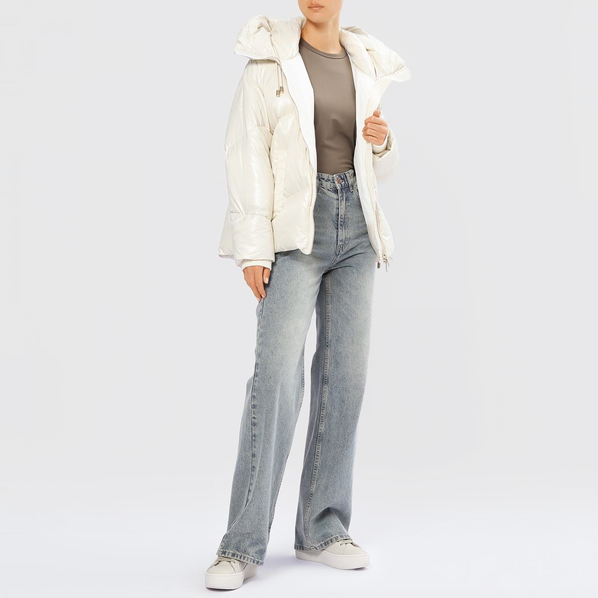 Куртка-пуховик в белом цвете от Baldinini. Эта стильная крутка станет изюминкой вашего гардероба на холодное время года. Куртка выполнена из плотной ткани с переливающимся эффектом, напоминающим жемчуг. Объёмный капюшон со шнурком-кулиской и высоким воротником надёжно защитит от ветра и осадков. У куртки застёжка на двойную молнию, широкие рукава с резинками на манжетах, пояс на резинке для дополнительной защиты от ветра.