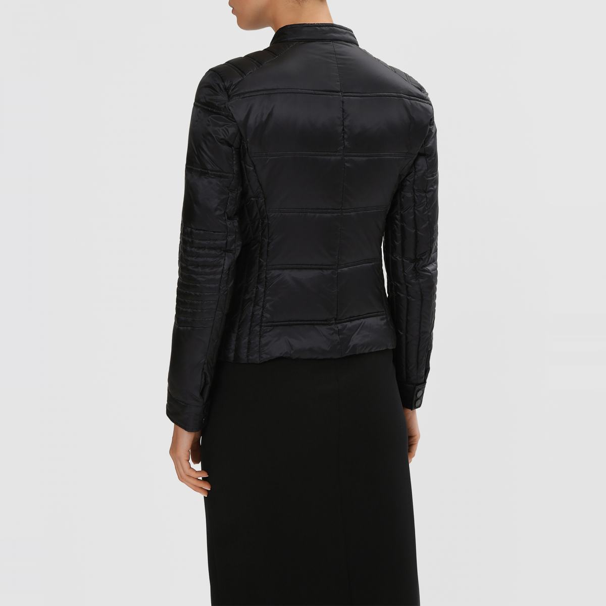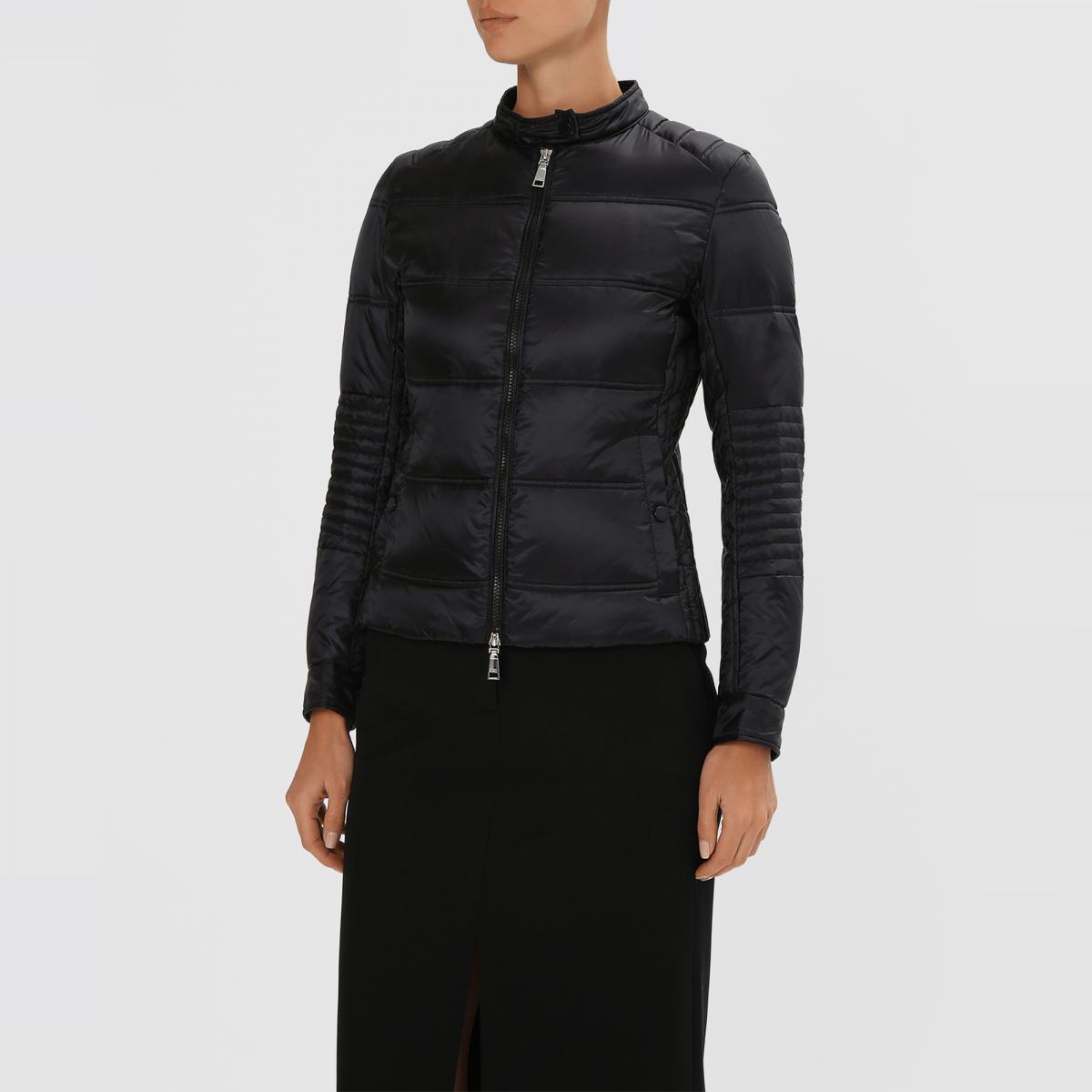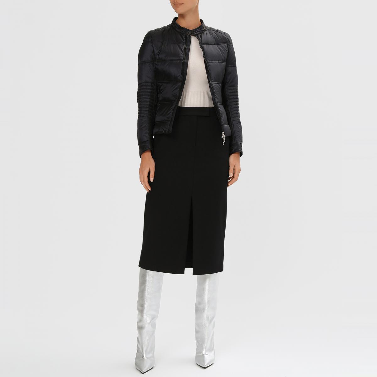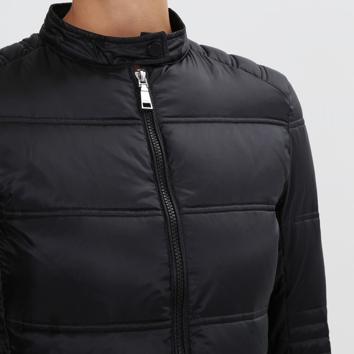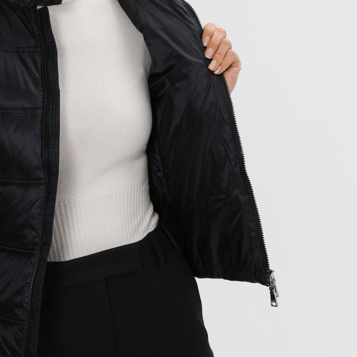 Стёганая куртка-пиджак Seventy из текстильной ткани чёрного цвета. Модель, вдохновлённая мужской модой, имеет короткий, облегающий крой, расклешённый дизайн, украшен двойной застёжкой-молнией и боковыми карманами на пуговицах.