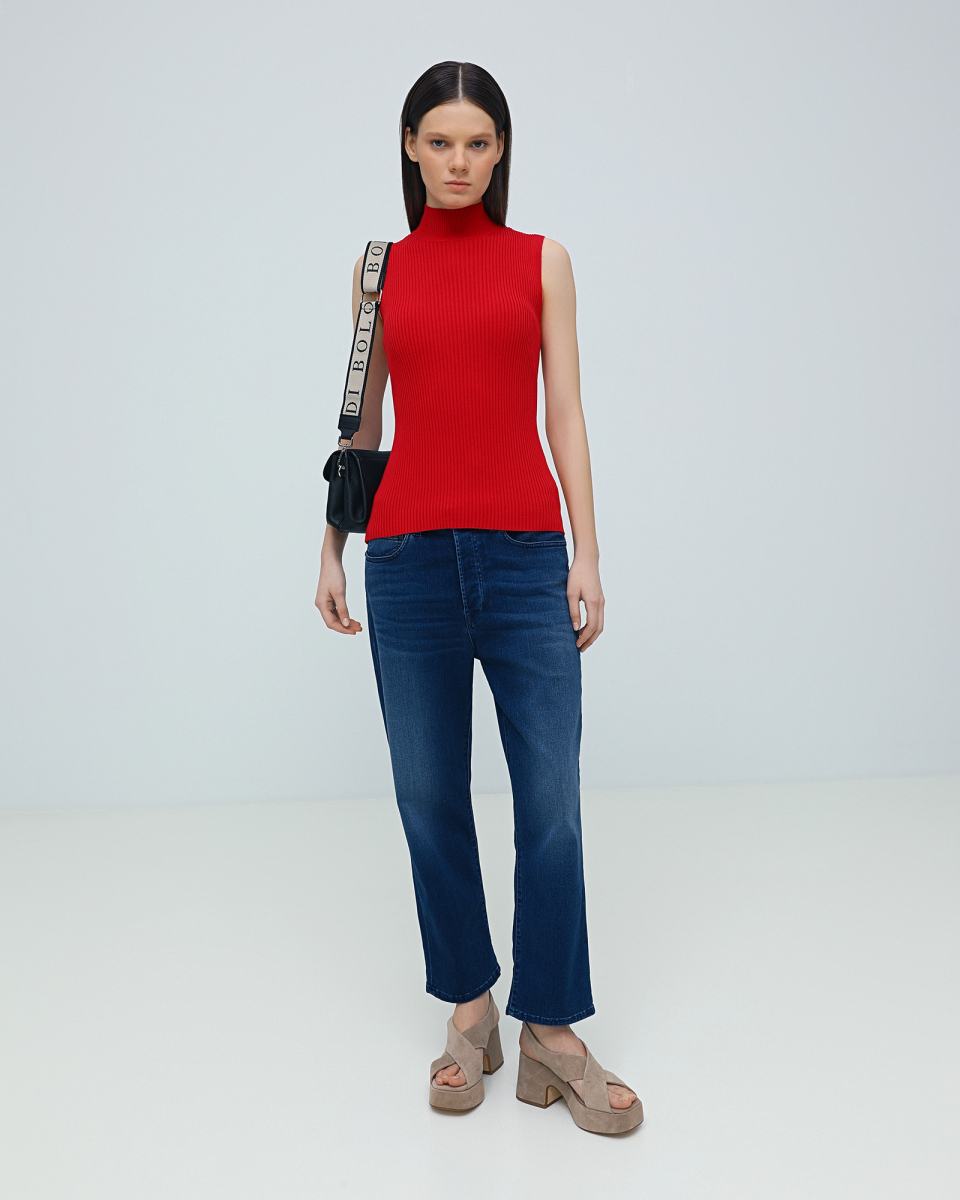 Красный топ с Principe di Bologna с высоким голом добавит яркости в ваш образ. Модель выполнена из трикотажа, в составе которого вискоза, акрил и полиэстер. Эластичный, но плотный материал выгодно подчеркнет силуэт, поэтому топ идеально подойдет в качестве первого слоя под жакет или кардиган. Кроме этого его можно носить самостоятельно с брюками или юбками.
