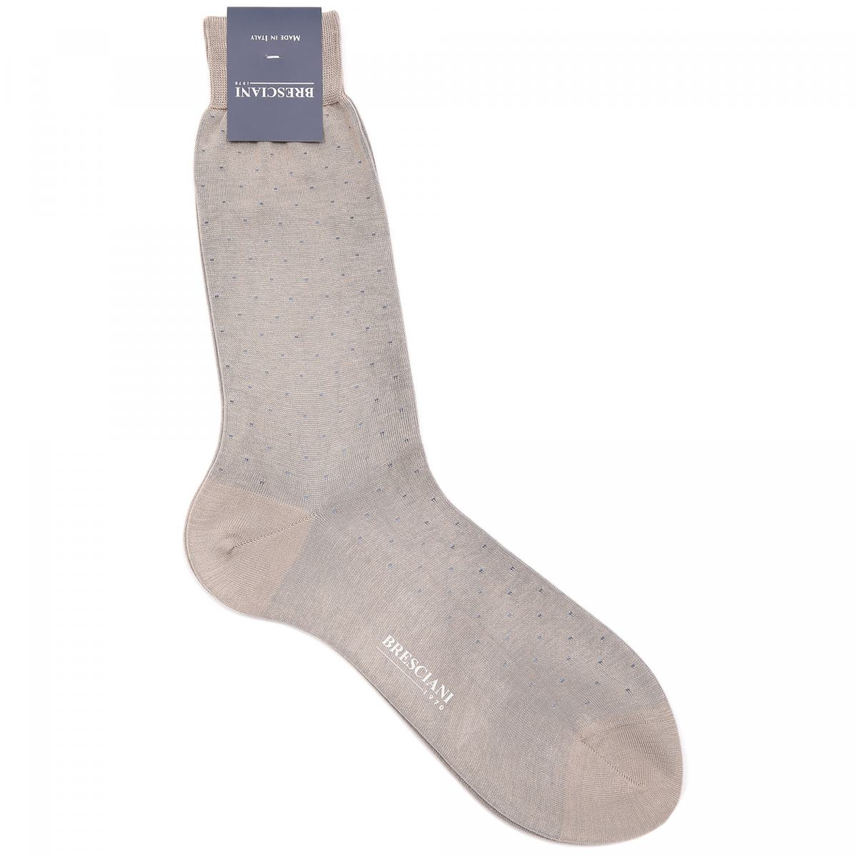 Носки из хлопка в бежевом цвете от Bresciani. Тонкие и прочные носки, прекрасно подходящие для лета. Ткань - 100% хлопок. Пятка и носок усилены, внизу фирменный логотип бренда.