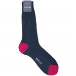 Высокие хлопковые носки от Bresciani в синем цвете с яркой пяткой и мыском. Состав: 100% хлопок.