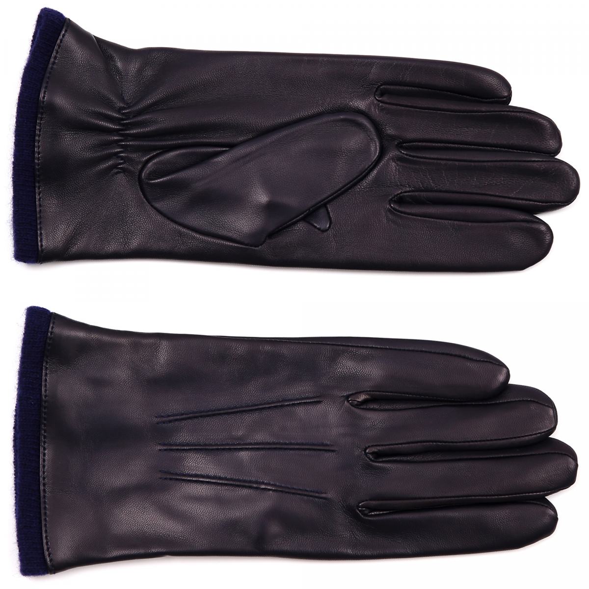 Перчатки из кожи в тёмно-синем цвете от Fabi. Классические мужские перчатки из кожи станут идеальным завершением образа для холодного времени года. Перчатки выполнены из гладкой натуральной кожи с декоративными швами и приятными к телу трикотажными манжетами. Внутри тёплая шерстяная подкладка. Длина перчаток - 26 см.