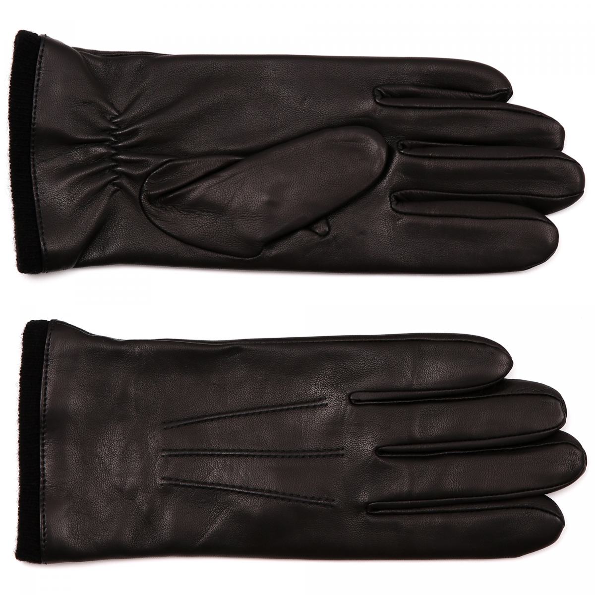 Перчатки из кожи в чёрном цвете от Fabi. Классические мужские перчатки из кожи станут идеальным завершением образа для холодного времени года. Перчатки выполнены из гладкой натуральной кожи с декоративными швами и приятными к телу трикотажными манжетами. Внутри тёплая шерстяная подкладка. Длина перчаток - 26 см.