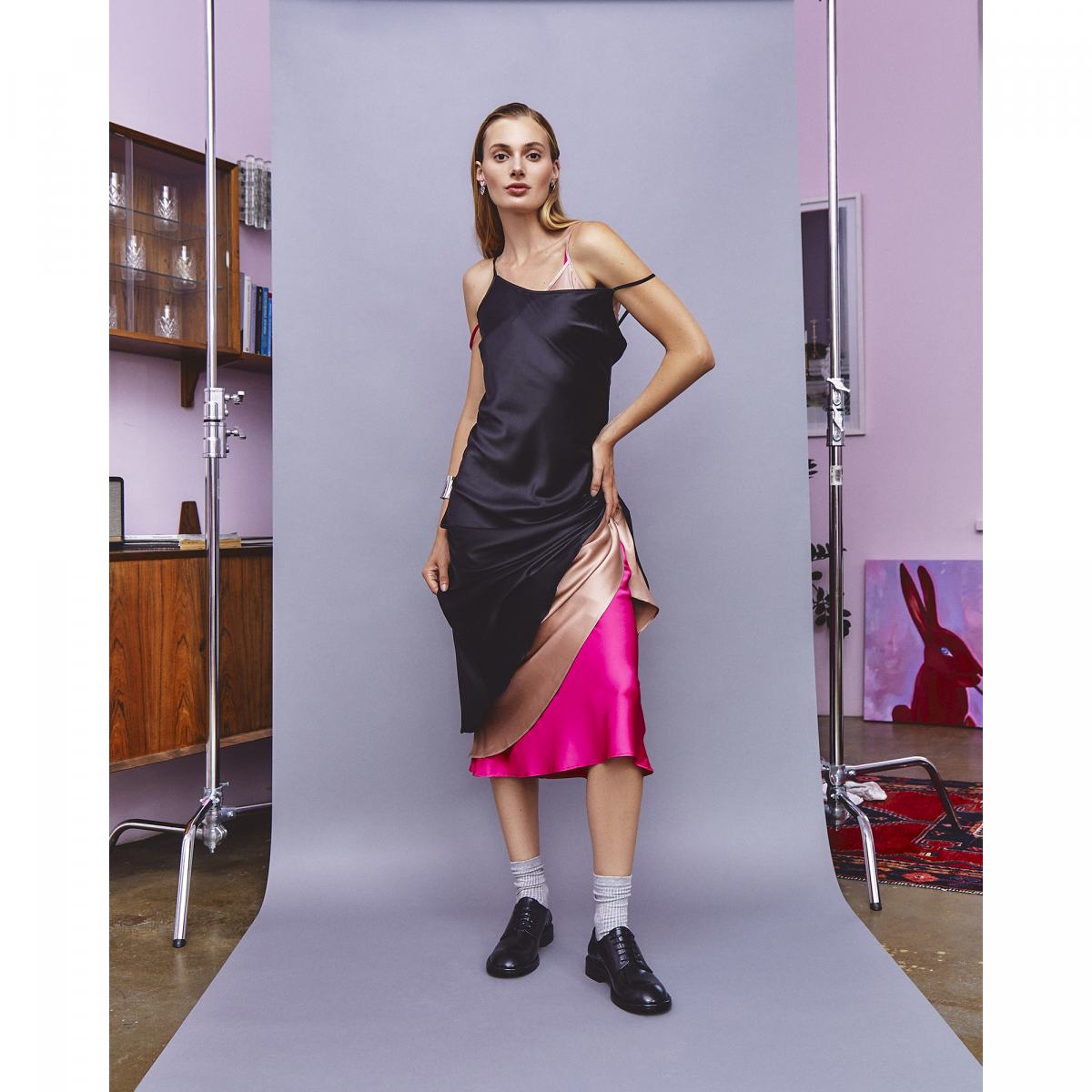 Розовое платье из шёлка от Principe di Bologna. Модель выполнена из текстиля, в составе которого 92% шёлка и 8% эластана. Платье на тонких бретелях из шелка станет отличным вариантом на вечер. Идеально в паре с туфлями на шпильке и небольшим клатчем.