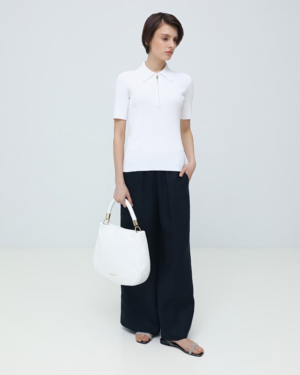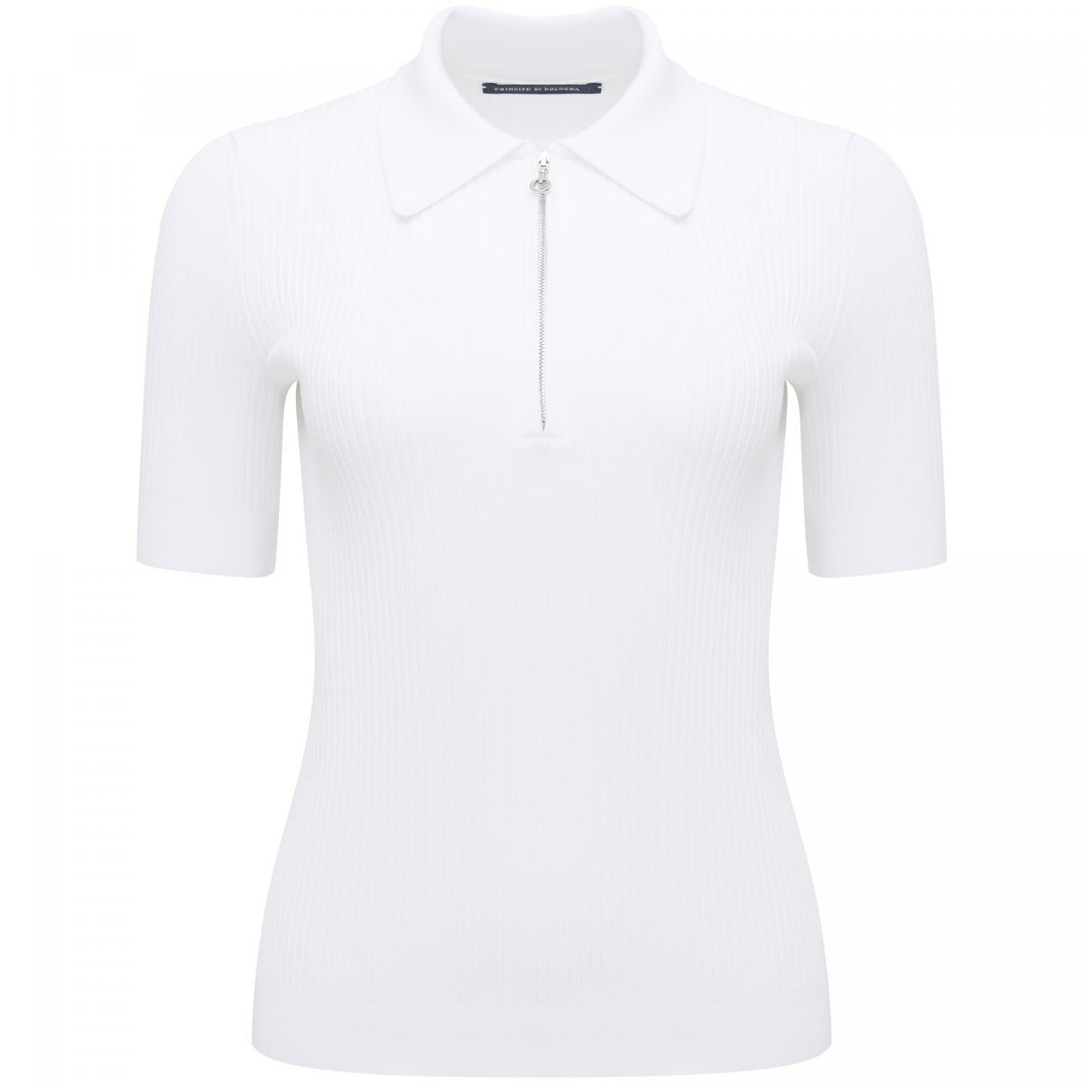 Футболка поло Principe di Bologna в белом цвете станет основой базового гардероба. Модель выполнена из трикотажа, в составе которого вискоза, акрил и полиэстер. Эластичный, но плотный материал выгодно подчеркнет силуэт, а металлическая молния станет дополнительным акцентом. Футболку можно носить как самостоятельно, так и в качестве первого слоя под жакет.