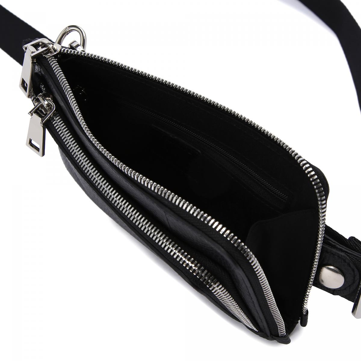 Сумка на пояс из натуральной черной кожи от Principe di Bologna. Сумка выполнена из натуральной кожи, с текстильным ремнем, который регулируется по длине. Карман на молнии, основное отделение так же закрывается на молнию. О принадлежности к бренду сообщает тиснёный логотип Principe di Bologna.