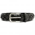Ремень из чёрной плетёной кожи от Reptile's House. Стильный ремень выполнен из натуральной кожи высочайшего качества. Его длину можно свободно отрегулировать под ваш размер. Застёжка-пряжка полукруглой формы выполнена из металла с эффектом состаренности. Ширина ремня 3 см.