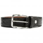 Ремень из чёрной лаковой кожи от Reptile's House. Стильный ремень выполнен из натуральной кожи высочайшего качества, тиснённой под чешую рептилии. Подкладка выполнена из гладкой коричневой кожи. Ремень дополнен металлической пряжкой интересной формы. Ширина ремня 4 см.
