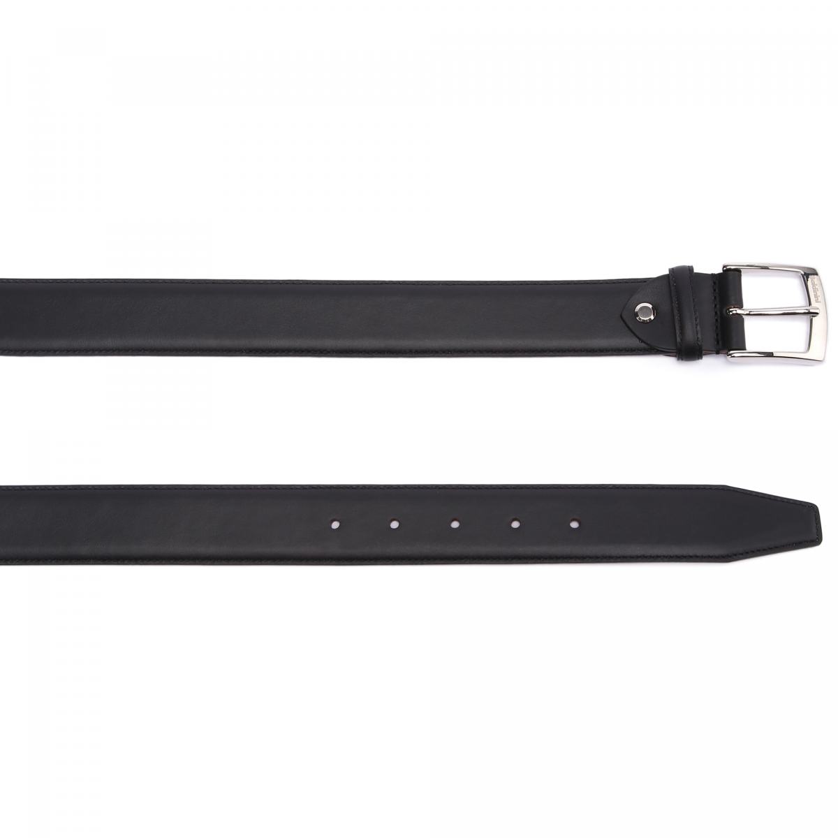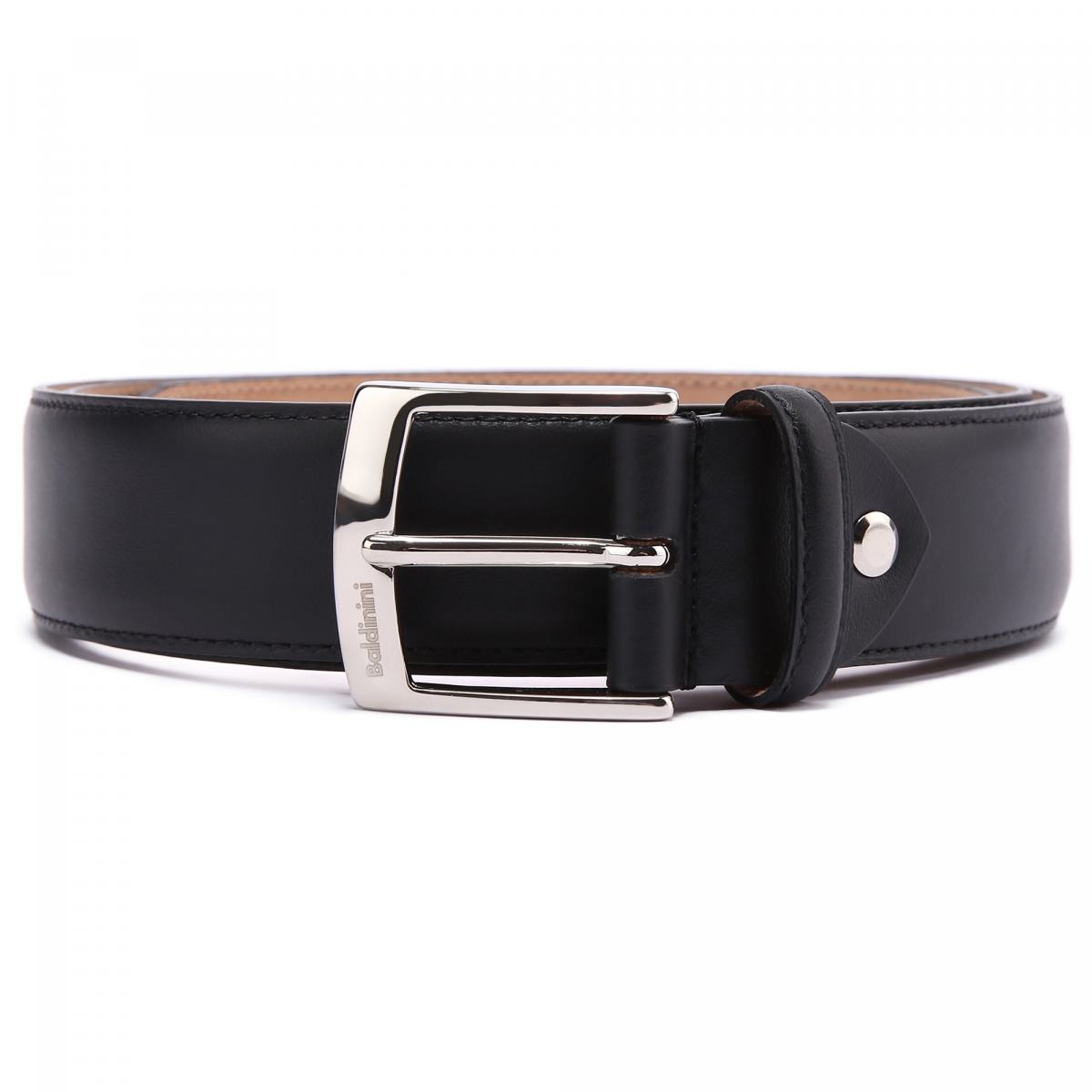 Ремень из натуральной чёрной кожи от итальянского бренда Baldinini. Ремень выполнен из гладкой кожи с гладкой светло-коричневой подкладкой. Металлическая застёжка-пряжка прямоугольной формы с логотипом бренда. Ширина ремня 3 см.