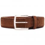 Ремень из коричневой замшевой кожи от Reptile's House. Модель выполнена из мягкой натуральной замши со строчкой. Застёжка-пряжка прямоугольной формы. Ширина ремня 3 см.