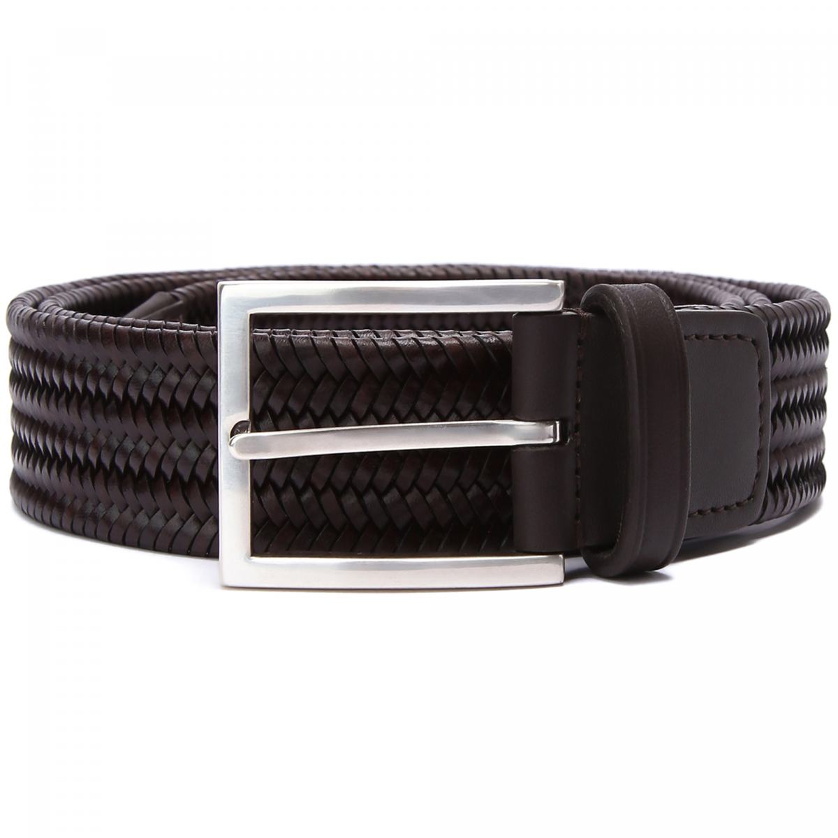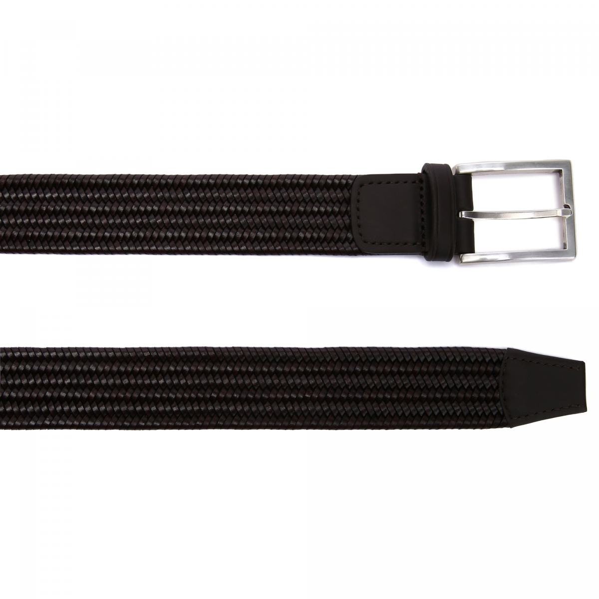 Ремень из переплетённой натуральной кожи в тёмно-коричневом цвете от Fabrizio Lesi. Ремень выполнен из кожи, с прямоугольной металлической пряжкой. Длина ремня свободно регулируется. Ширина ремня - 3 см.