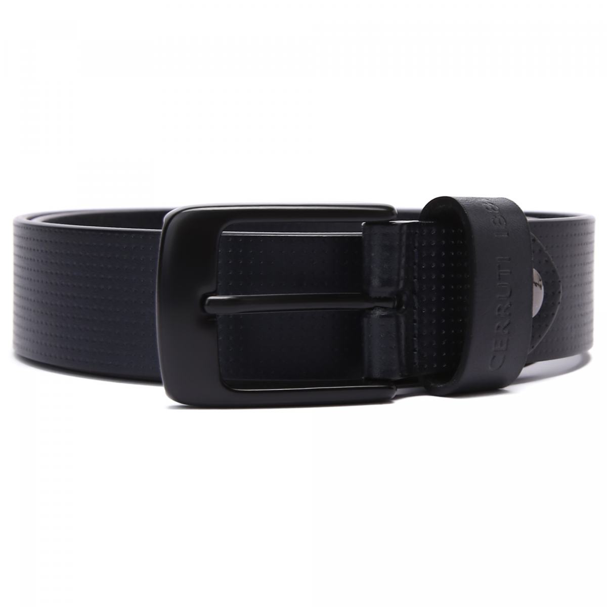 Ремень из натуральной кожи в тёмно-синем цвете от Cerruti 1881. Ремень выполнен из кожи с микроперфорацией, с металлической пряжкой чёрного цвета. Ширина ремня - 3 см.