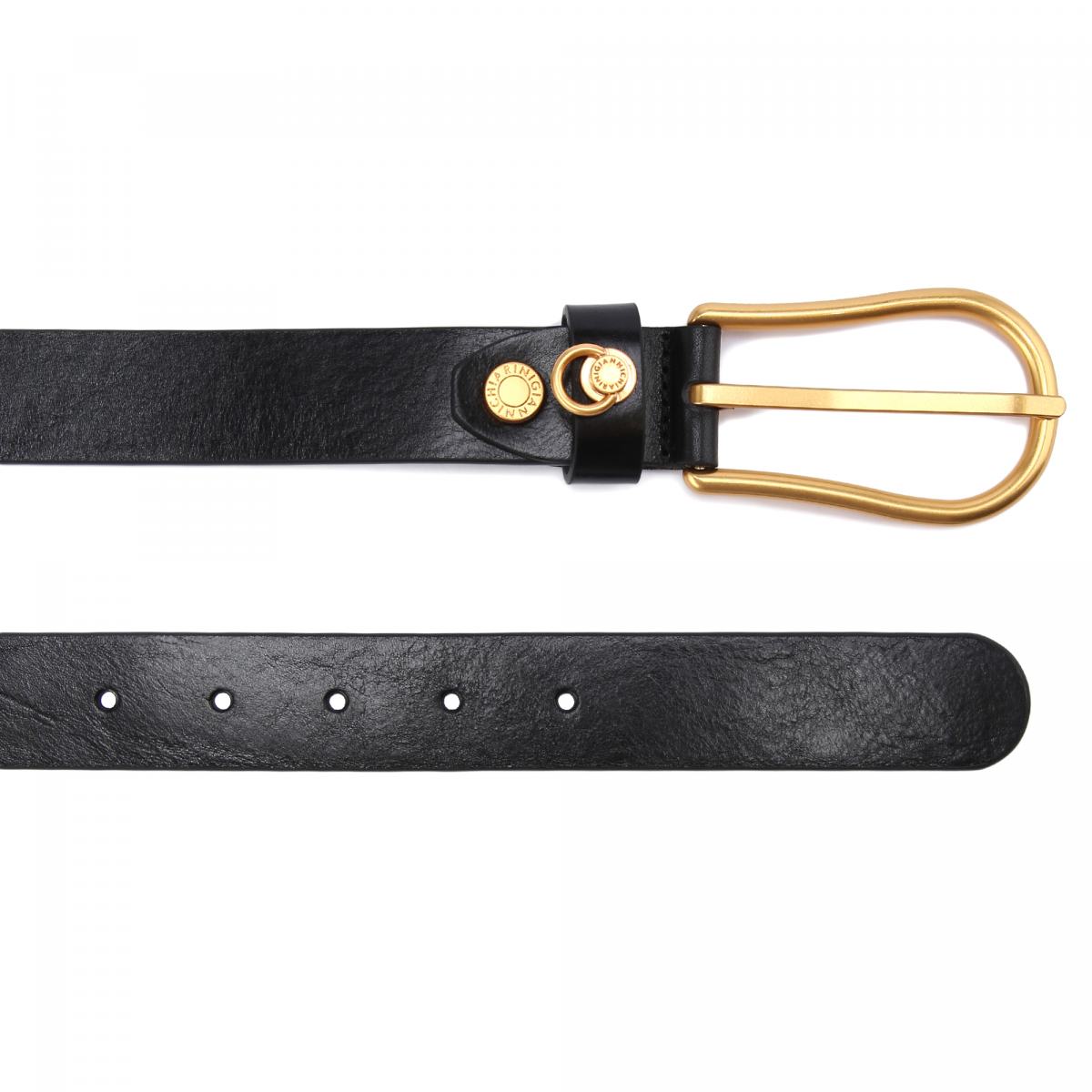 Ремень из натуральной кожи в черном цвете от Gianni Chiarini Firenze. Ремень лаконичного дизайна — идеальный аксессуар как для повседневного, так и для элегантного образа. Ремень выполнен из натуральной кожи и оснащен металлической пряжкой с логотипом. Ширина: 2,5 см. Длина ремня для размера M: 85-100 см. Для размера L: 100-115 см.