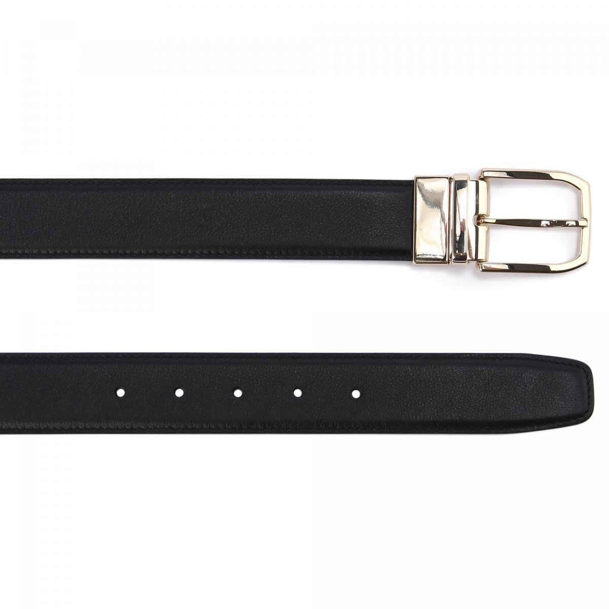 Классический ремень из натуральной чёрной кожи от итальянского бренда Fabrizio Lesi. Ремень выполнен из чёрной зернистой кожи с металлической застёжкой-пряжкой. Ширина ремня 3 см.