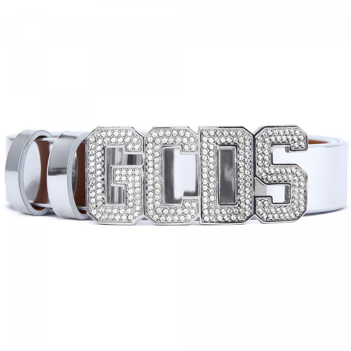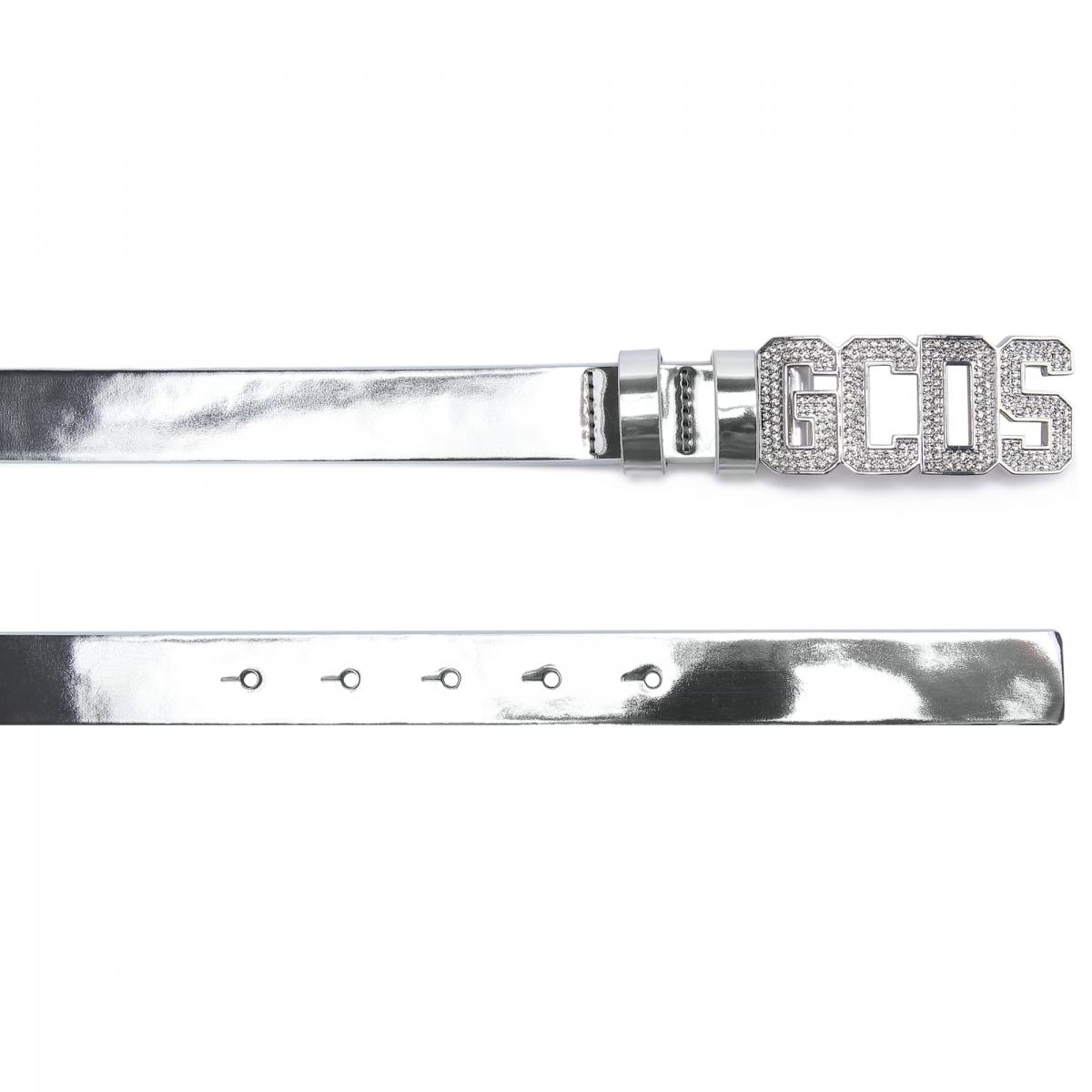 Ремень из натуральной кожи в серебристом цвете от GCDS. Кожаный ремень с петлями. Застежка на перемычку и пряжку, украшенную серебристым логотипом GCDS с кристаллами. Ширина ремня 2,5 см.