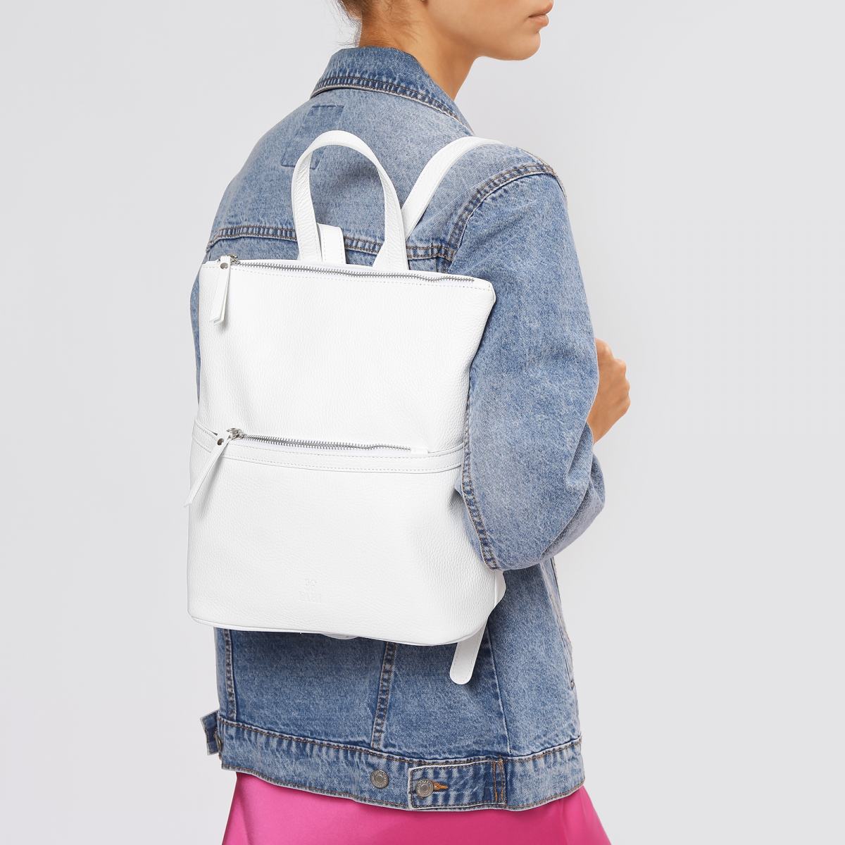 Рюкзак из натуральной белой кожи от Fabi. Практичный рюкзак с минималистичным дизайном подойдёт к любому образу и стилю. Плотная кожаная ручка, лямки из натуральной кожи. Спереди расположен карман на молнии. Рюкзак закрывается на молнию, внутри текстильная подкладка и небольшой карман на молнии.