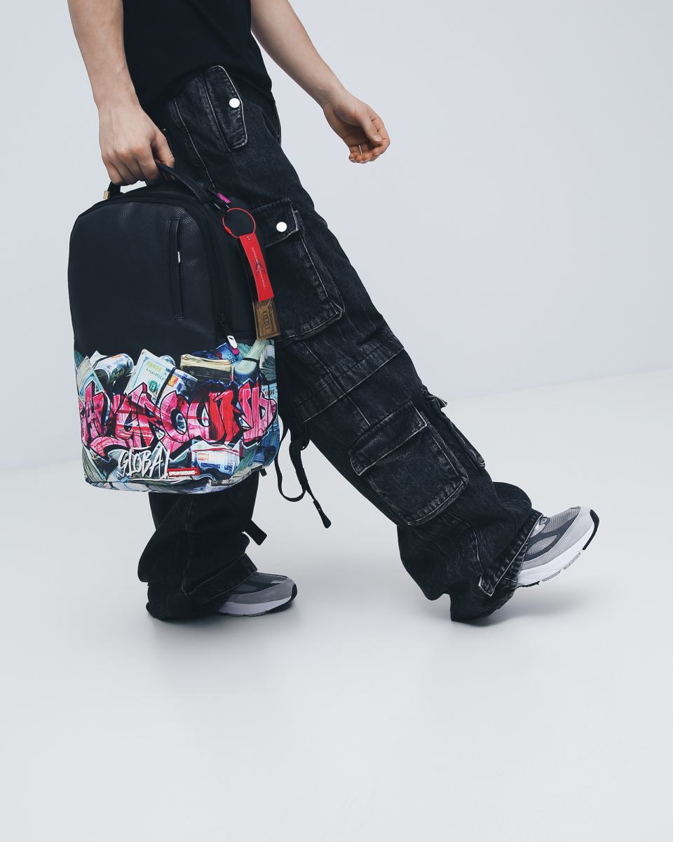 Рюкзак из эко кожи с ярким граффити-принтом от SPRAYGROUND. Непревзойденное качество в каждой детали, удобство и эргономичность, а так же эффектный и стильный дизайн - все это можно сказать о каждом творении бренда SPRAYGROUND. Рюкзак выполнен из эко кожи, устойчивой к следам носки и не пропускающей влагу. Регулируемые анатомичные лямки. Боковые карманы. Потайной карман на молнии. Эргономичная сетчатая спинка. Молнии с металлической фурнитурой. Металлический бэйдж "Sprayground Authentic". Отдельный карман для ноутбука. Отдельный велюровый карман для солнцезащитных очков. Сетчатый карман-органайзер. Сквозной карман на спинке для установки рюкзака на ручку чемодана. Материал: прочная искусственная кожа, моющаяся, водонепроницаемая.