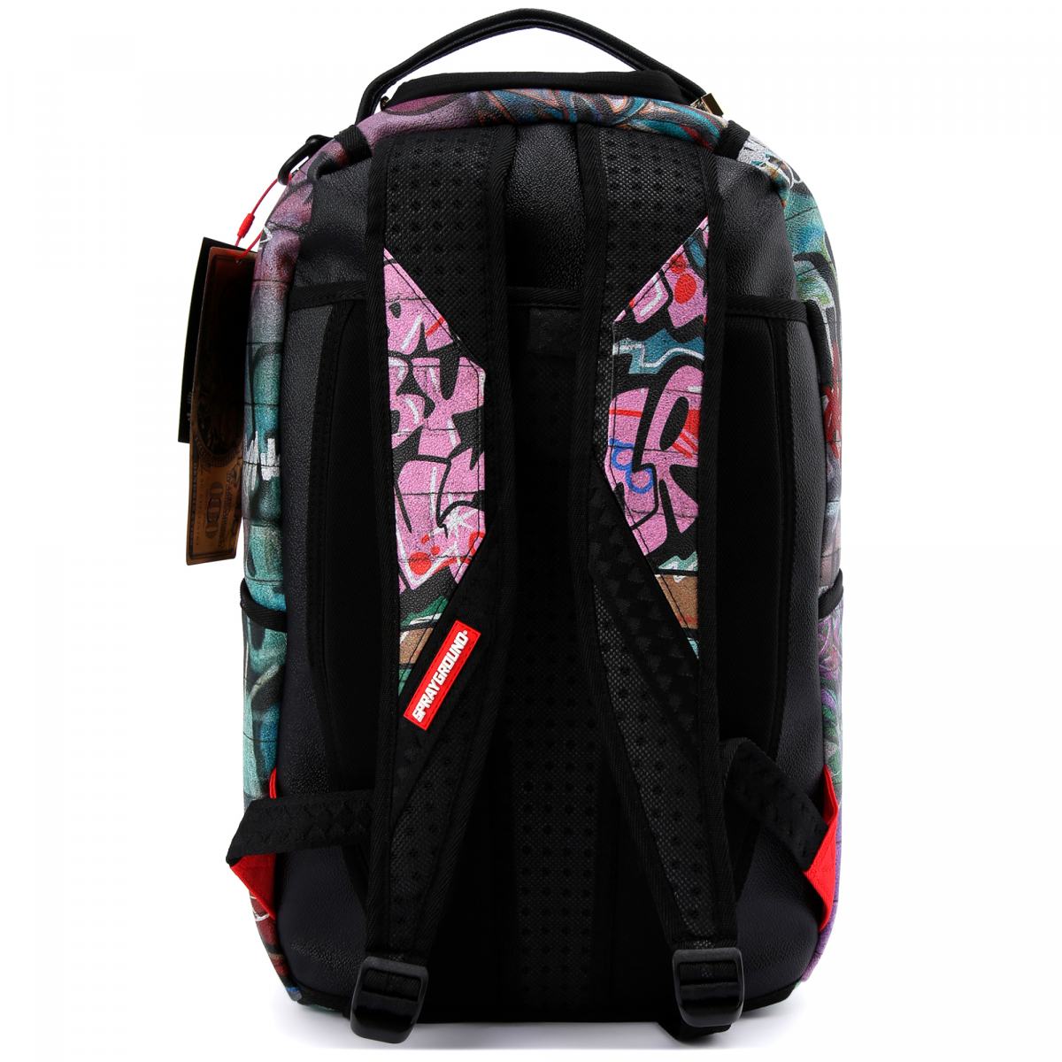 Рюкзак из эко кожи с ярким граффити-принтом от SPRAYGROUND. Непревзойденное качество в каждой детали, удобство и эргономичность, а так же эффектный и стильный дизайн - все это можно сказать о каждом творении бренда SPRAYGROUND. Рюкзак выполнен из эко кожи, устойчивой к следам носки и не пропускающей влагу. Регулируемые анатомичные лямки. Боковые карманы. Потайной карман на молнии. Эргономичная сетчатая спинка. Молнии с металлической фурнитурой. Металлический бэйдж "Sprayground Authentic". Отдельный карман для ноутбука. Отдельный велюровый карман для солнцезащитных очков. Сетчатый карман-органайзер. Сквозной карман на спинке для установки рюкзака на ручку чемодана. Материал: прочная искусственная кожа, моющаяся, водонепроницаемая.