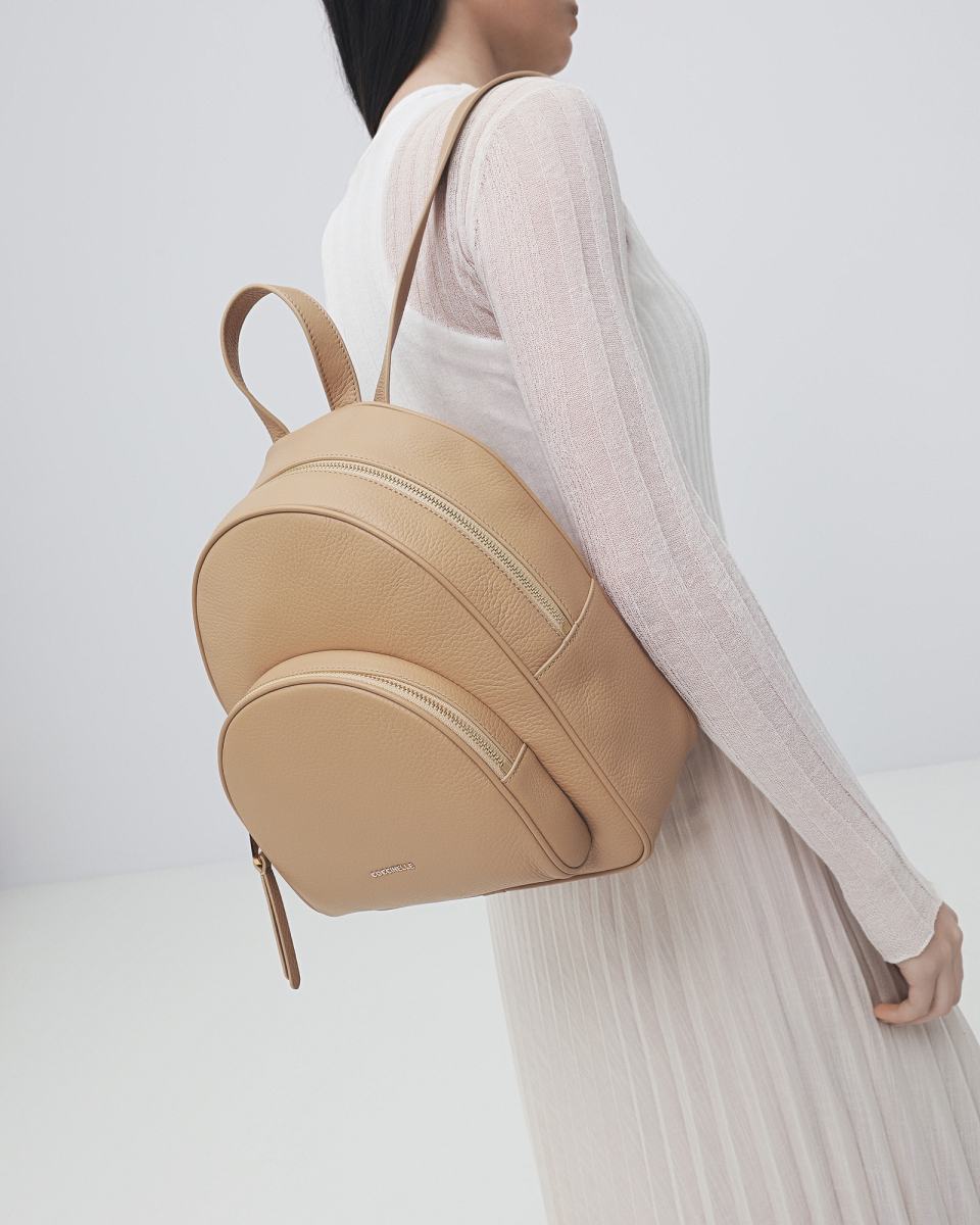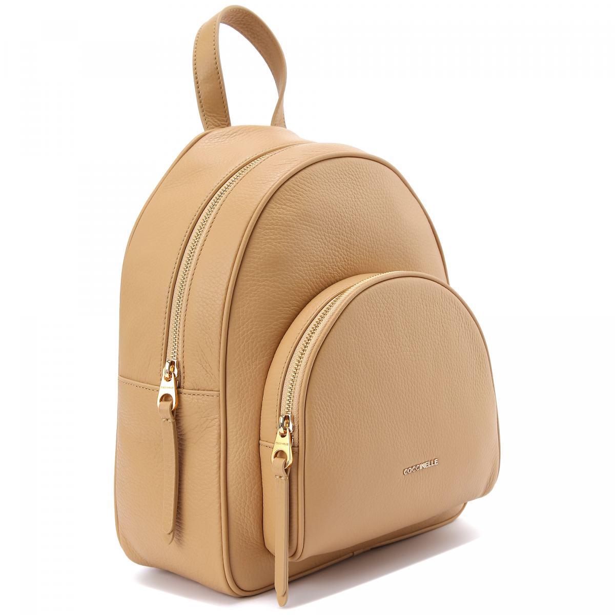 Рюкзак из натуральной кожи в бежевом цвете от Coccinelle. Линия Coccinelle Gleen отличается строгим и современным стилем с сильными и универсальными линиями. Каждая модель создана с учетом потребностей практичности и повседневной жизни. Эта модель изготовлена из кожи, обработанной на специальном оборудовании, а затем отжатой, чтобы сохранить ее мягкость. Это очень прочная кожа, которая легко поддается чистке и идеально подходит для ежедневного использования. У рюкзака кожаные лямки и верхняя ручка. Спереди расположен карман на молнии. Основное отделение так же закрывается на молнию, внутри текстильная подкладка и дополнительный карман на молнии для небольших вещей.