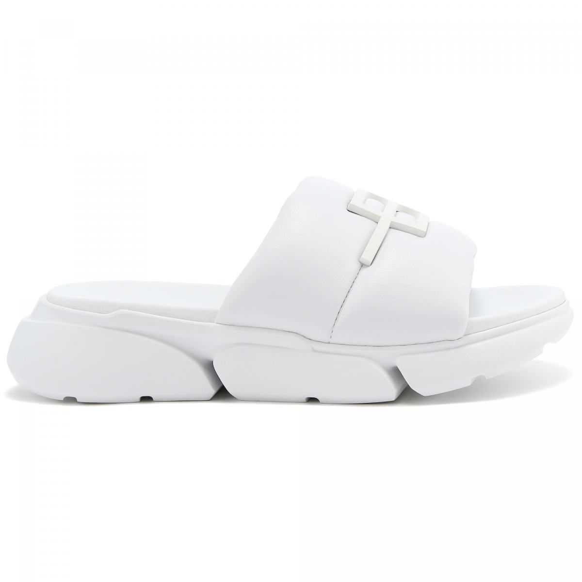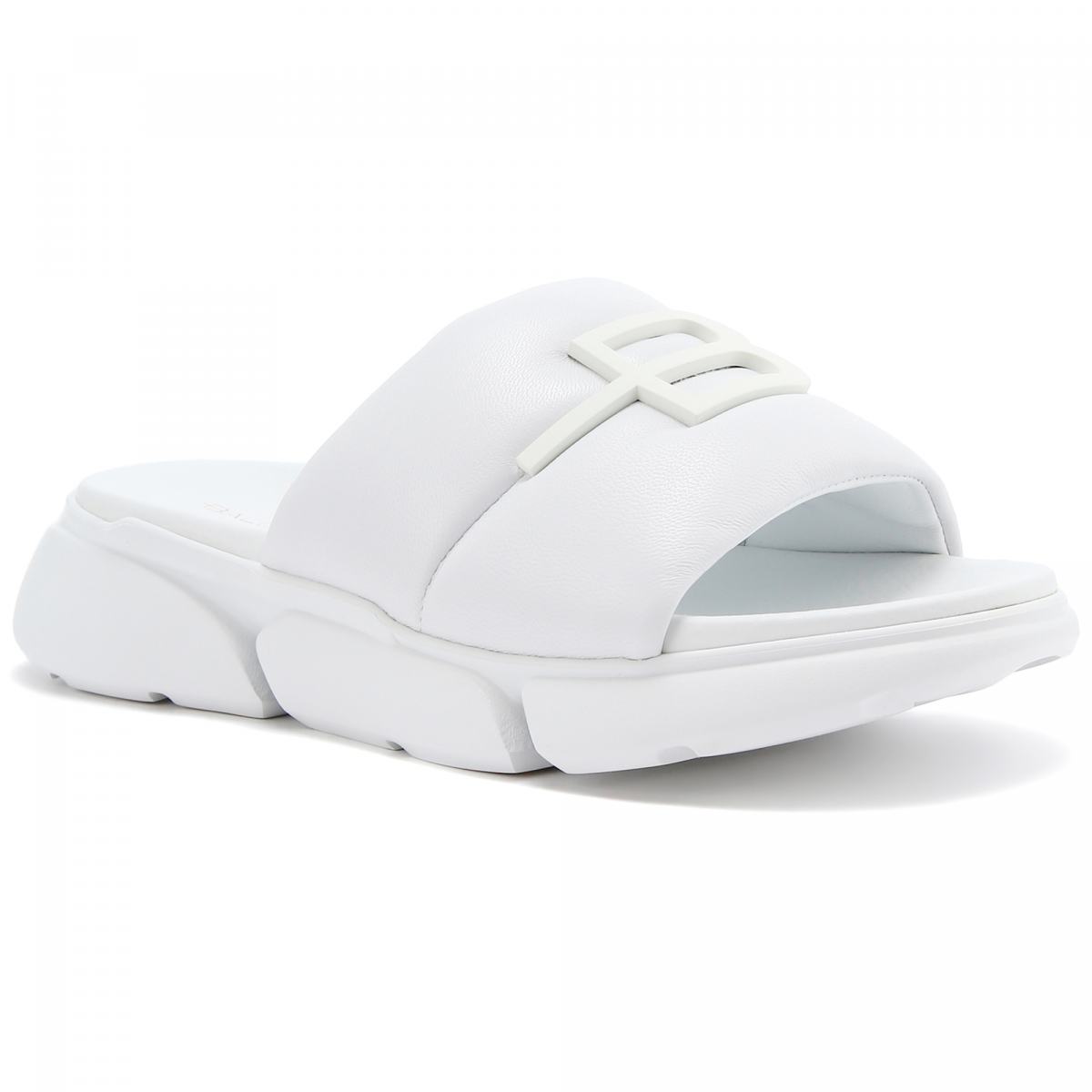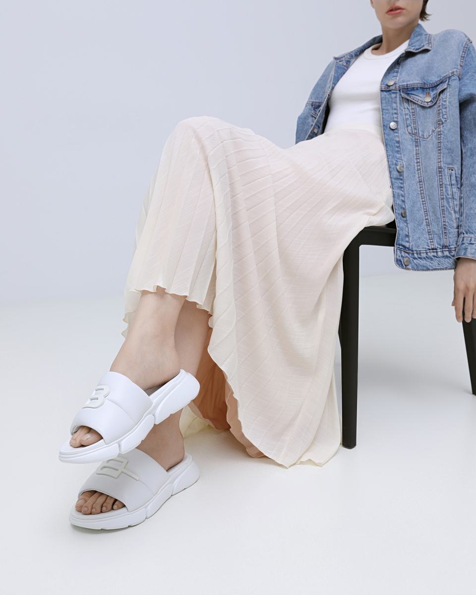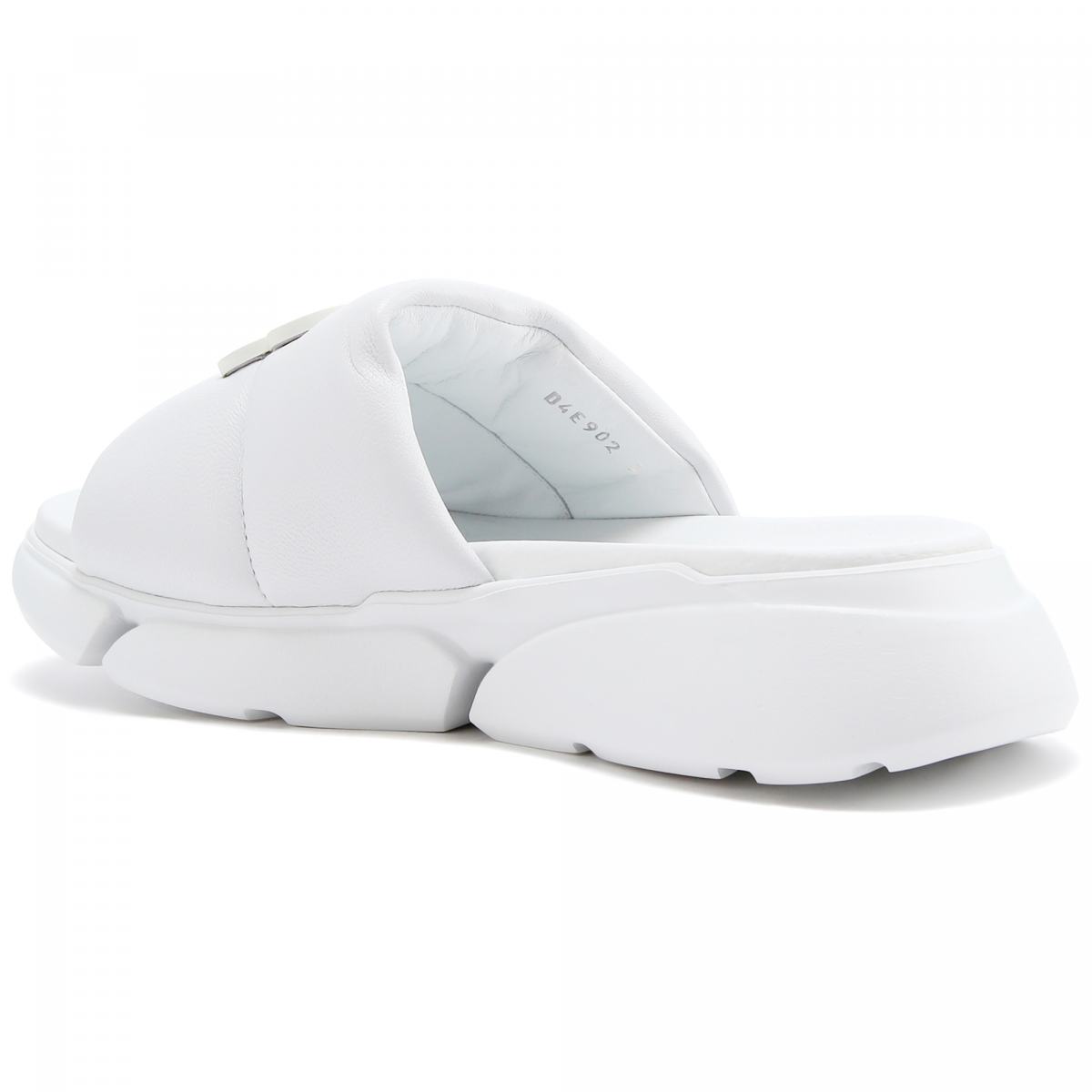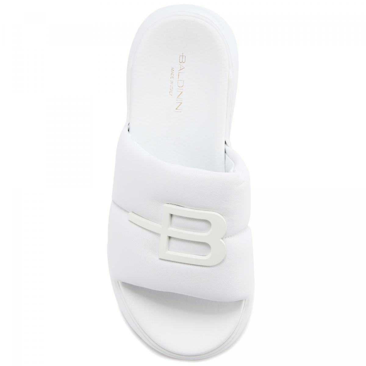 Сабо из натуральной кожи в белом цвете от Baldinini. Белые сабо помогут создать множество женственных образов. Модель выполнена из гладкой натуральной кожи, на высокой резиновой подошве. Такую пару легко вписать в образы с платьями, сарафанами и юбками любой длины. Акцент дизайна - фирменный знак бренда спереди.