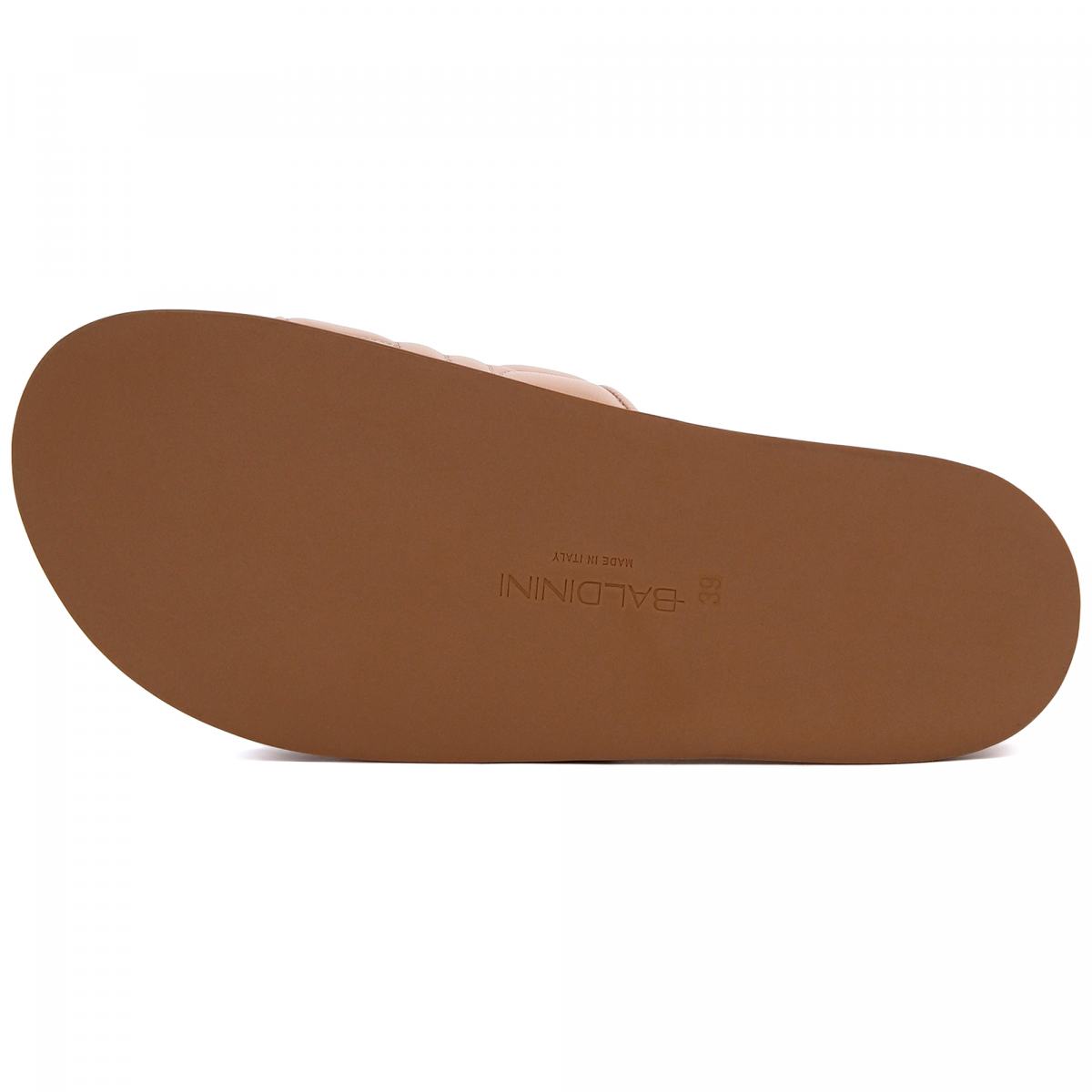Сабо в бежевом цвете от Baldinini станут идеальным вариантом для отпускных образов. Модель выполнена из натуральной кожи и украшена фирменной строчкой. Удобная стелька из кожи и резиновая подошва обеспечат комфорт. Сабо легко сочетать как с шортами, так и с легкими сарафанами.