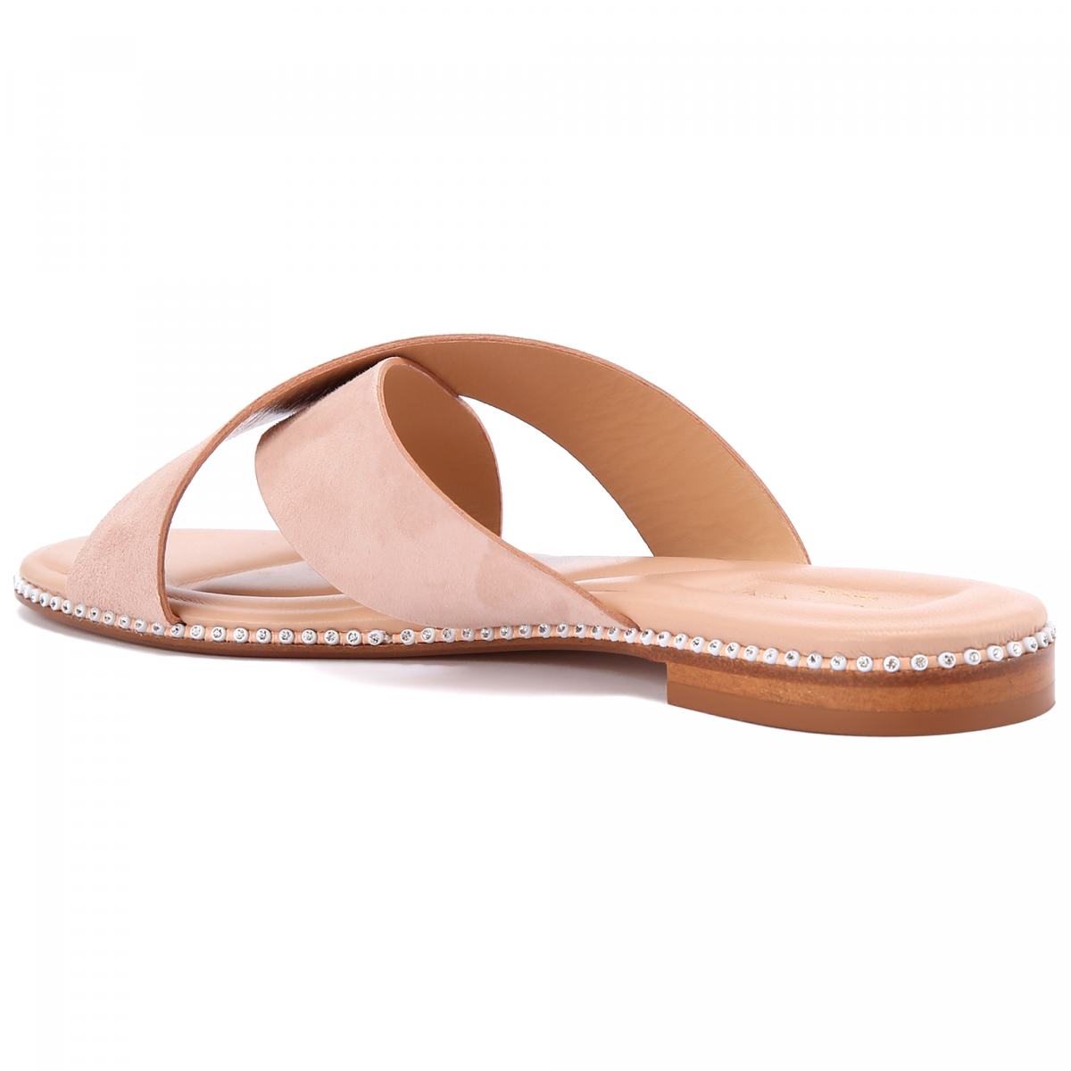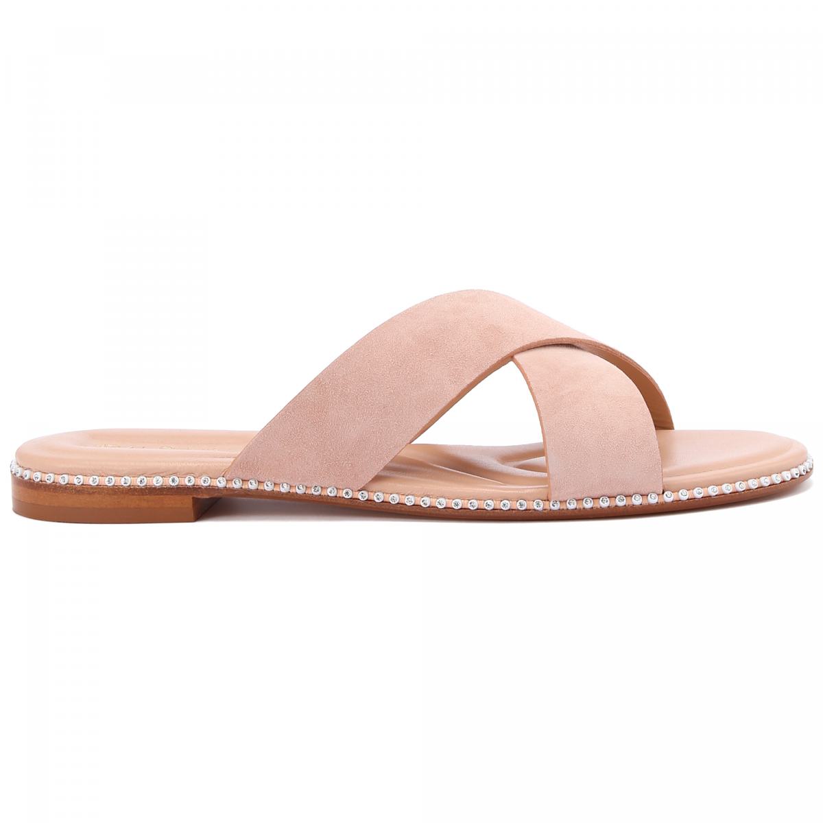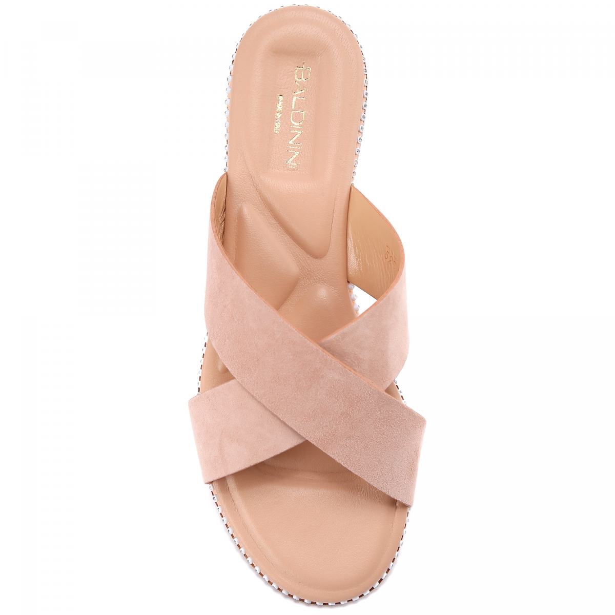 Бежевые сандалии Baldinini подстроятся под любой образ, благодаря лаконичному дизайну и базовому оттенку. Модель выполнена в виде широких полос из натуральной кожи, на резиновой подошве. Внутри стелька также из кожи. По краю подошвы пара дополнена небольшими стразами. За счет компактного размера, пара станет отличным вариантом для отпуска. Сочетайте сандалии с сарафанами, шортами и любыми открытыми нарядами.