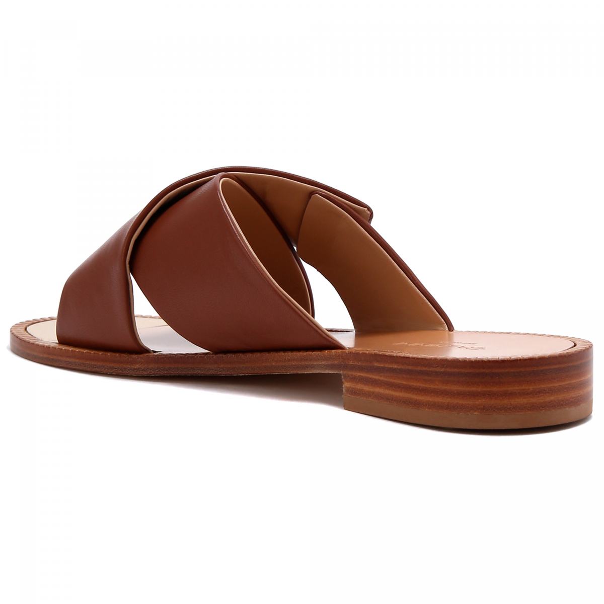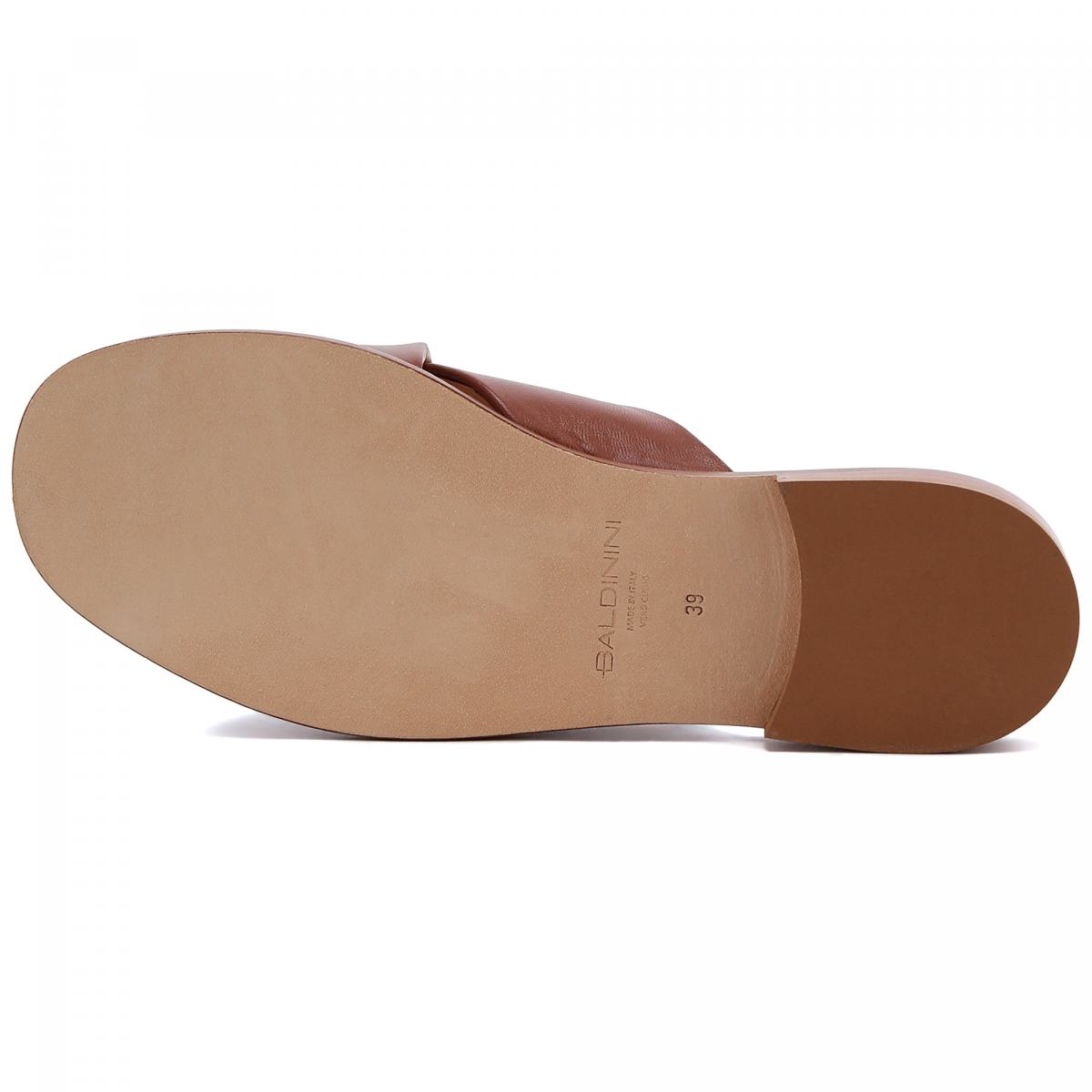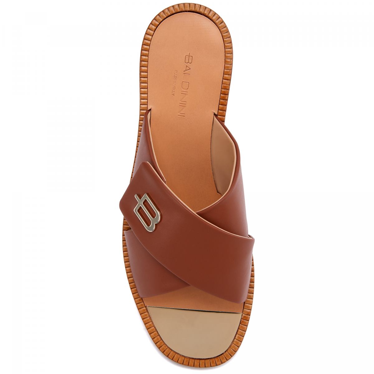 Коричневые сандалии Baldinini подчеркнут вашу изящность в летних образах. Модель выполнена из широких полос натуральной кожи, переплетенных между собой. Стелька и подошва также из кожи. Невысокий каблук позволит создавать элегантные образы как с брюками, так и с платьями. Завершает дизайн металлическая вставка в виде фирменной эмблемы.