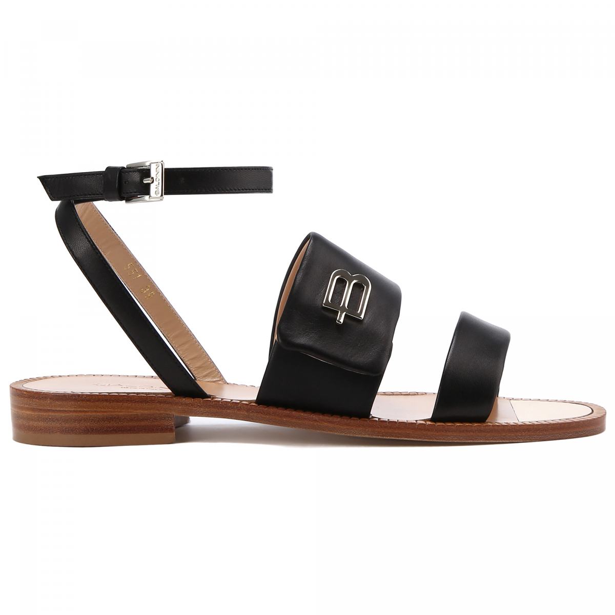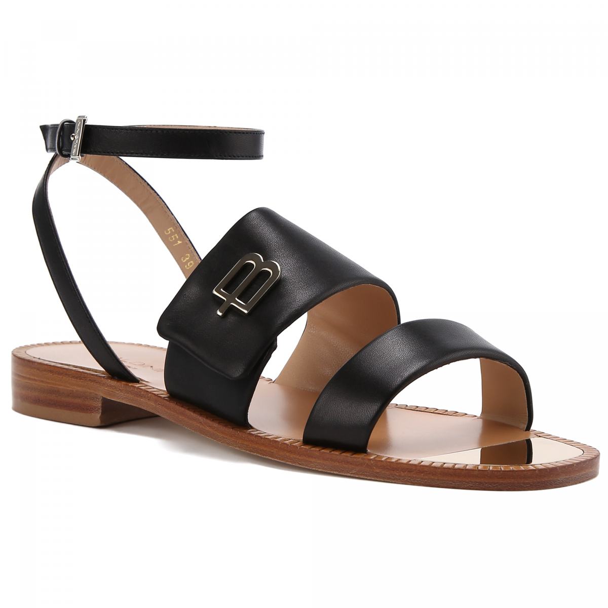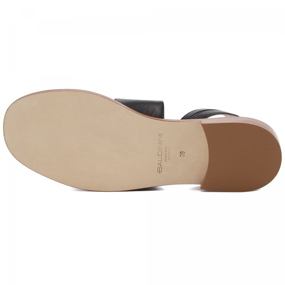 Сандалии из натуральной кожи от Baldinini. Пара в черном цвете подойдут для повседневных образов. Модель выполнена из кожи, стелька и подошва с небольшим каблуком также из кожи. Стопу фиксирует ремешок с пряжкой, а завершает дизайн фирменная эмблема в виде буквы B на передней части. Сандалии можно стилизовать как с шортами, так и с платьями и юбками.