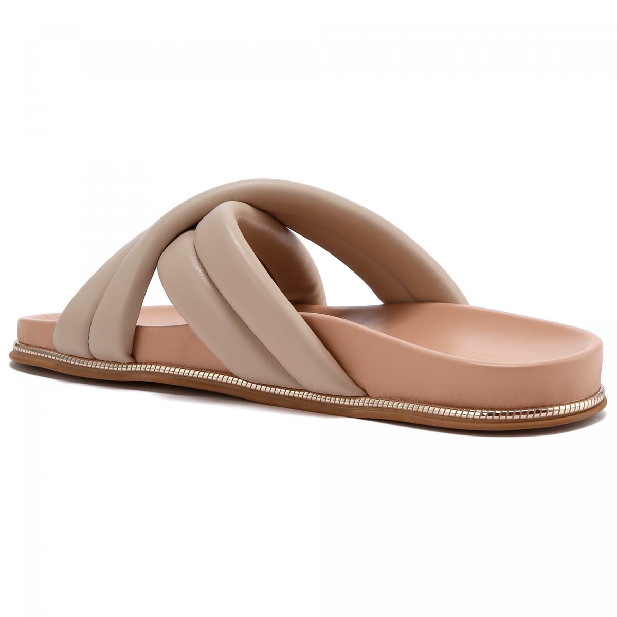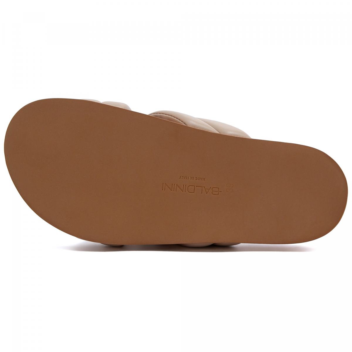 Сандалии из натуральной кожи от Baldinini. Бежевые сандалии помогут создать множество женственных образов. Модель выполнена из мягких полос искусственной кожи, на резиновой подошве. Такую пару легко вписать в образы с платьями, сарафанами и юбками любой длины.
