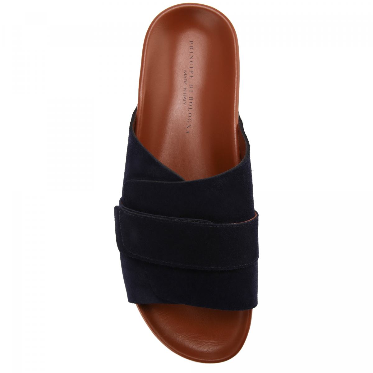 Темно-синие сандалии Principe di Bologna дополнят практически любой летний образ. Модель выполнена из натуральной замши, внутри подклад и стелька из кожи, подошва — из резины. Дизайн дополняет застежка на липучке, которая также позволит регулировать посадку. Сандалии можно сочетать с шортами и рубашками, с футболками и легкими брюками.