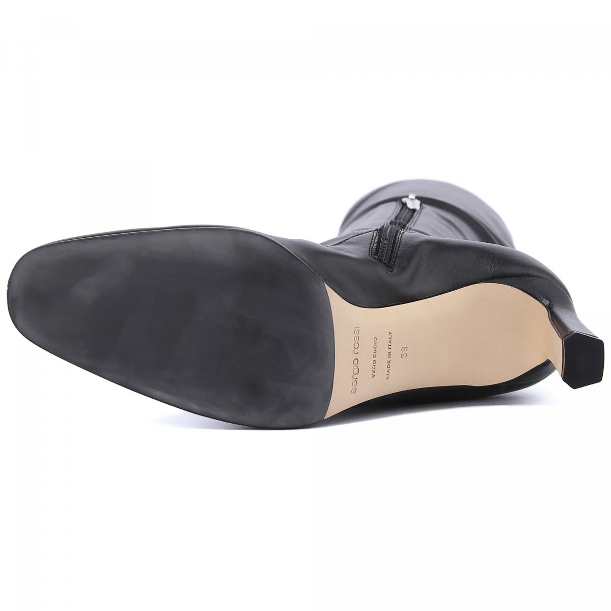 Сапоги из мягкой черной кожи от Sergio Rossi. Сапоги на шпильке создают неподвластное времени очарование. Высокий каблук гармонично дополняет дизайн, придавая безошибочную женственность. Подошва, подкладка и стелька выполнены из натуральной кожи.