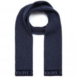 Базовый тёмно-синий шарф от итальянского бренда Fabi Шарф выполнен из тёплой пряжи и украшен фирменным логотипом бренда. Состав: 30% шерсть 35% вискоза 30% полиамид 5% кашемир. Длина шарфа - 180 см., ширина - 25 см.