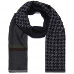 Чёрный шарф с геометричным узором от Fabi. Шарф в базовом цвете хорошо сочетается с различными зимними нарядами, будь то пуховики или куртки, а также с другими аксессуарами, как шапки и перчатки. Шарф выполнен из тёплой ткани, в составе которой: 52% шерсти, 35% модала и 13% полиамида. Длина шарфа - 190 см., ширина - 35 см.
