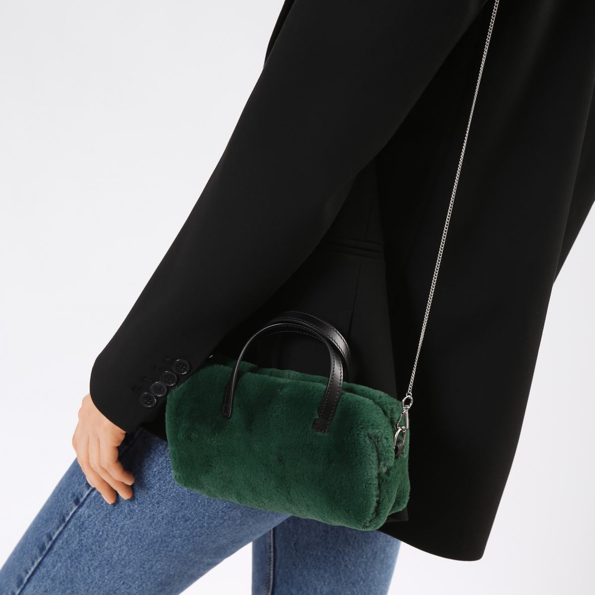 Объёмная тёмно-зелёная сумка из эко меха от ANNA RACHELE. Эта стильная сумка в форме цилиндра дополнит ваши зимние образы, добавив уюта и тепла. Сумка выполнена из текстильной ткани под плюшевый мех, с плотными кожаными ручками и ремнём-цепочкой, который можно снять. Застёжка на молнию, внутри текстильная подкладка и фирменный логотип бренда ANNA RACHELE.