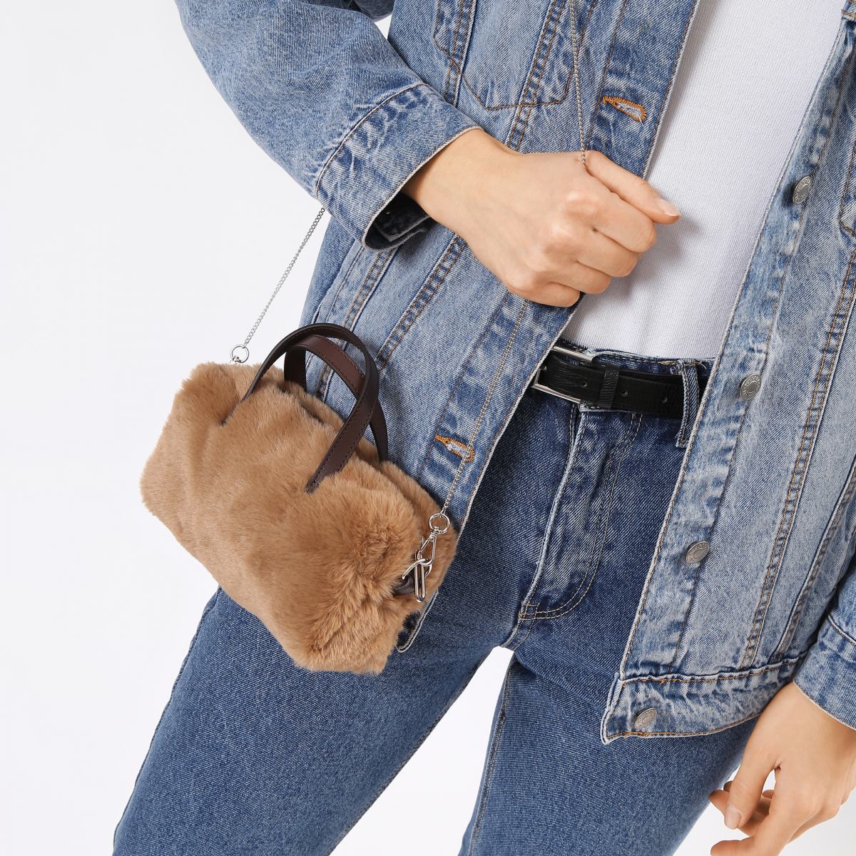 Объёмная бежевая сумка из эко меха от ANNA RACHELE. Эта стильная сумка в форме цилиндра дополнит ваши зимние образы, добавив уюта и тепла. Сумка выполнена из текстильной ткани под плюшевый мех, с плотными кожаными ручками и ремнём-цепочкой, который можно снять. Застёжка на молнию, внутри текстильная подкладка и фирменный логотип бренда ANNA RACHELE.