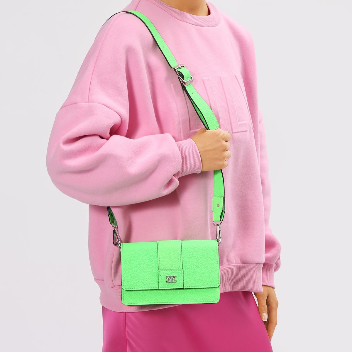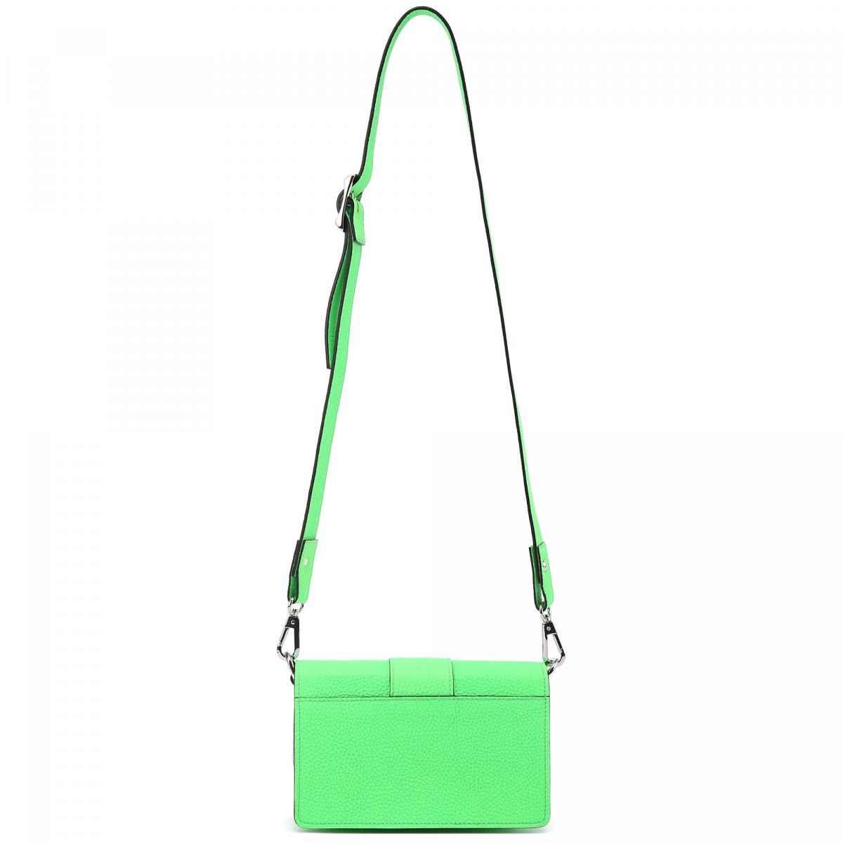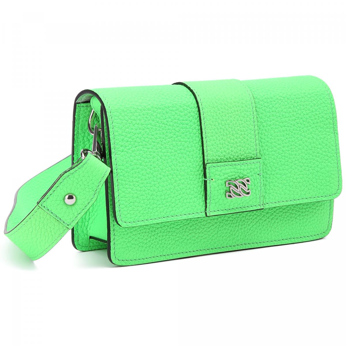 Сумка из натуральной кожи в ярко-зелёном цвете от Casadei. Эта стильная сумка станет вашей лучшей спутницей на вечеринках или летних прогулках. Небольшая сумочка выполнена из натуральной кожи, на кожаном ремне, длину которого можно регулировать с помощью пряжки. Ремень можно снять и носить сумочку как клатч. Сумка закрывается на магнитный замок, внутри подкладка из серебристой натуральной кожи. Спереди модель украшает фирменный знак бренда Casadei.