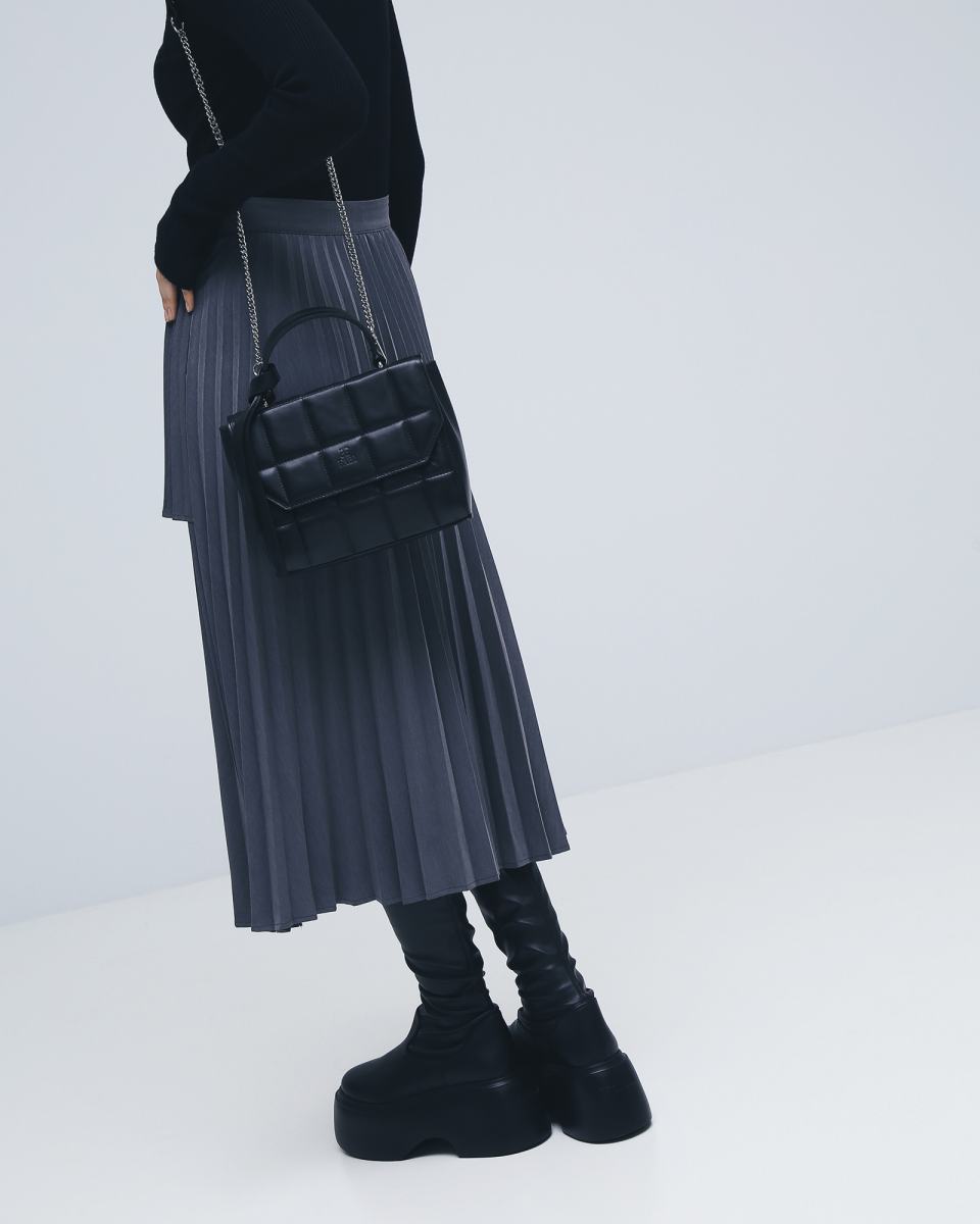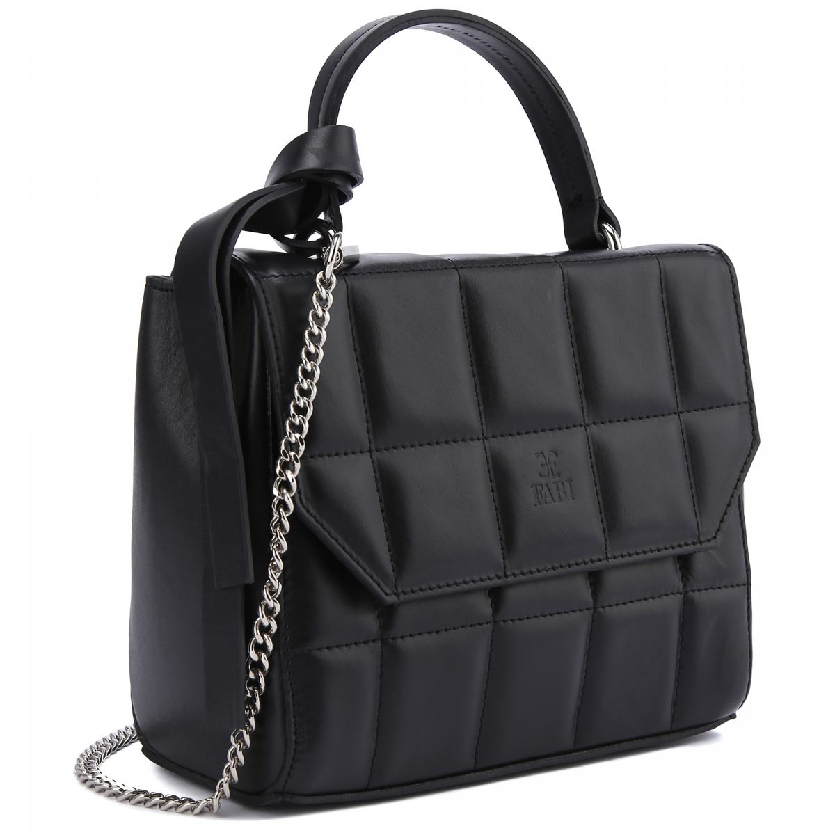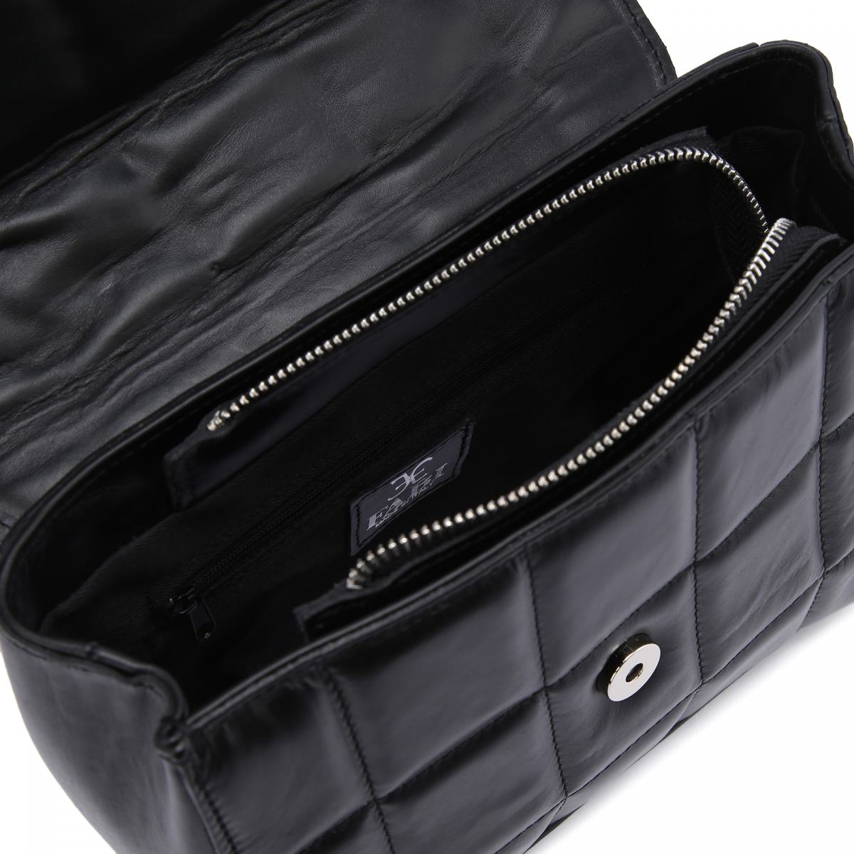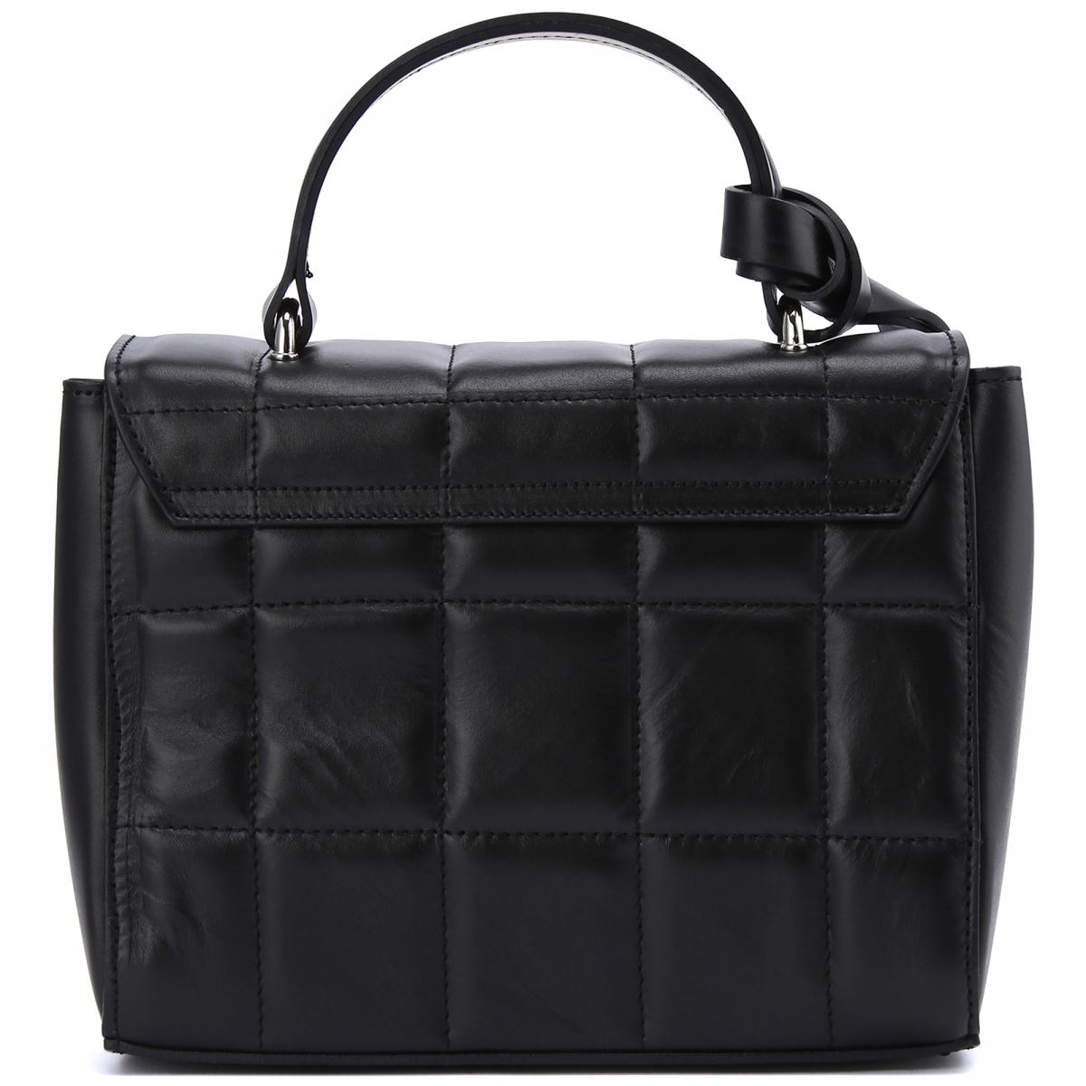 Сумка прямоугольной формы из черной кожи от Fabi. Небольшая сумка строгой формы дополнит повседневный образ деловой женщины. У сумки плотная ручка из кожи и дополнительный ремень на плечо. Сумка закрывается на магнитный замок, внутри дополнительная застёжка на молнию. Внутренняя отделка выполнена из текстильной ткани, на задней стенке расположен карман на молнии с фирменным кожаным лейблом бренда.