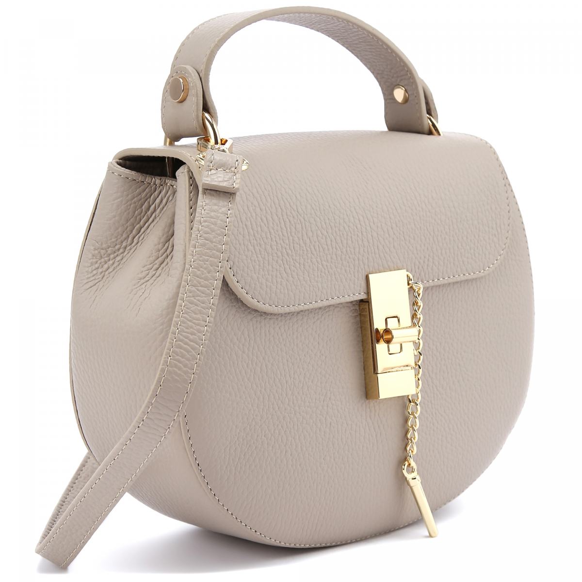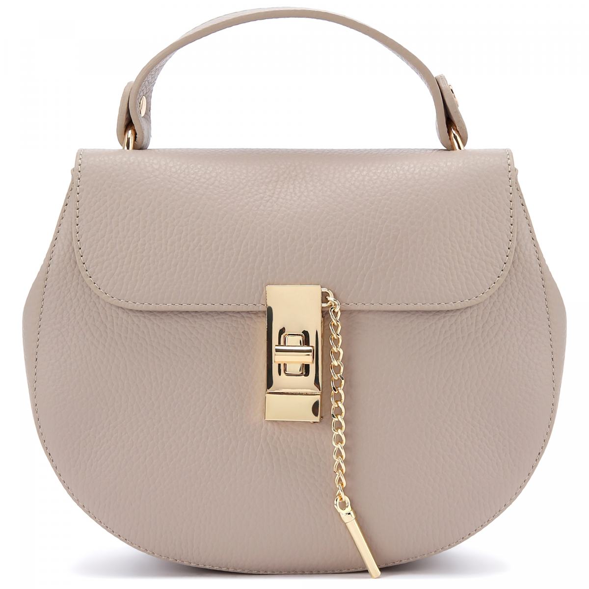 Сумка Fabi из натуральной кожи в бежевом цвете. Стильная сумочка полукруглой формы придётся по вкусу всем, кто не хочет брать с собой слишком много вещей, только самое необходимое. Сумку можно носить на плече или через плечо, используя кожаный ремень с регулировкой длины. Дизайн дополняет поворотный замок из золотистого металла спереди. Сумка закрывается на молнию, внутри текстильная подкладка и маленький карман с молнией.
