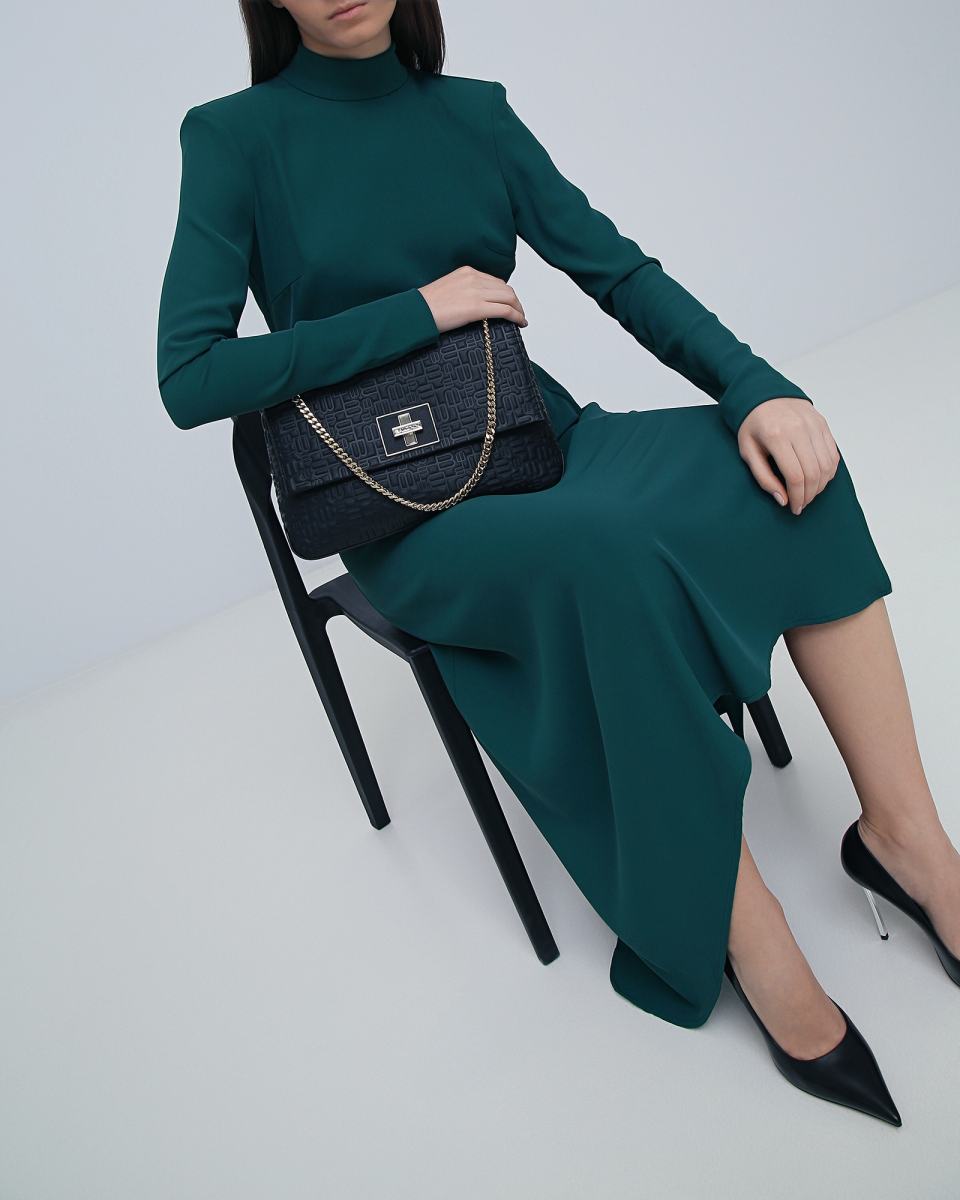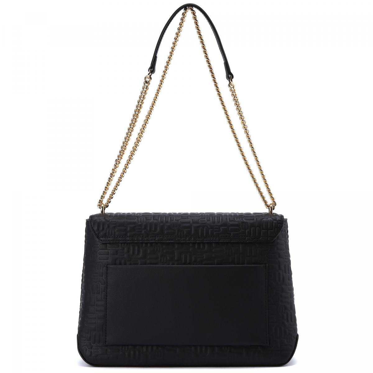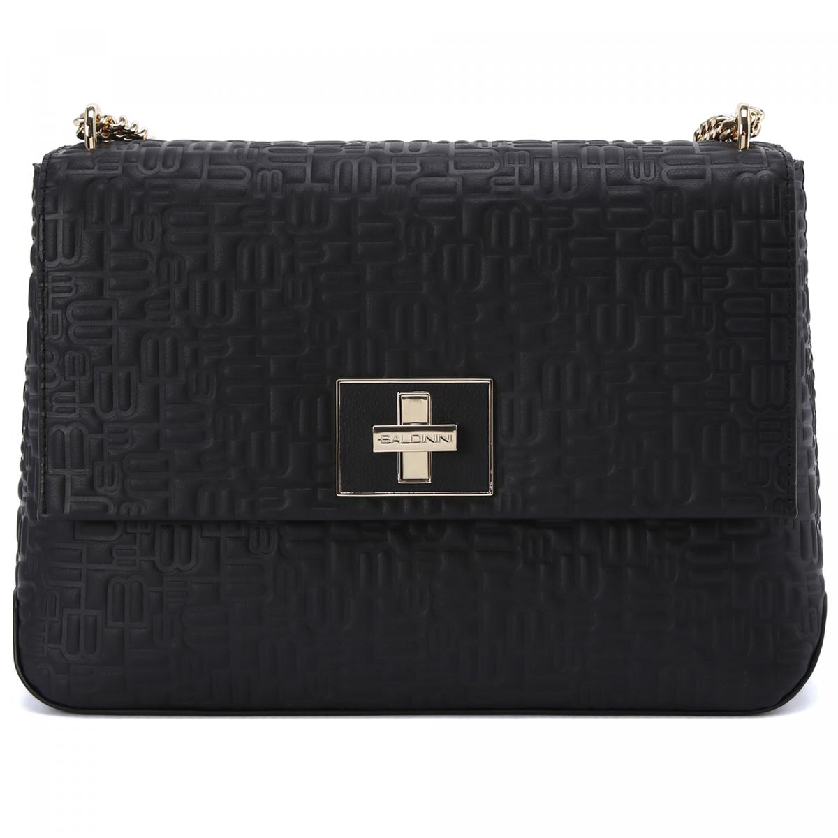 Сумка из натуральной кожи в черном цвете от Baldinini. Если вы ищите универсальную сумку, идеально подходящую как для дневного, так и для вечернего образа, эта модель - именно то, что вам нужно. Внутреннее отделение легко вместит в себя все самое необходимое. Тисненый логотип и ремешок из кожи и цепочки завершают образ. Сзади расположен открытый карман.