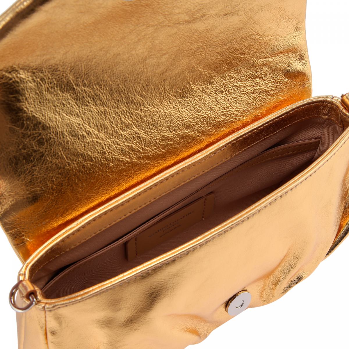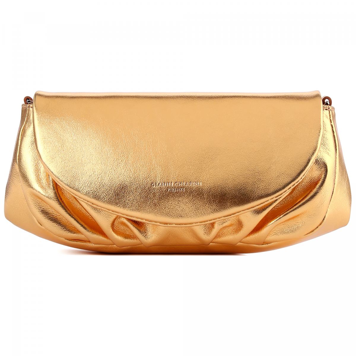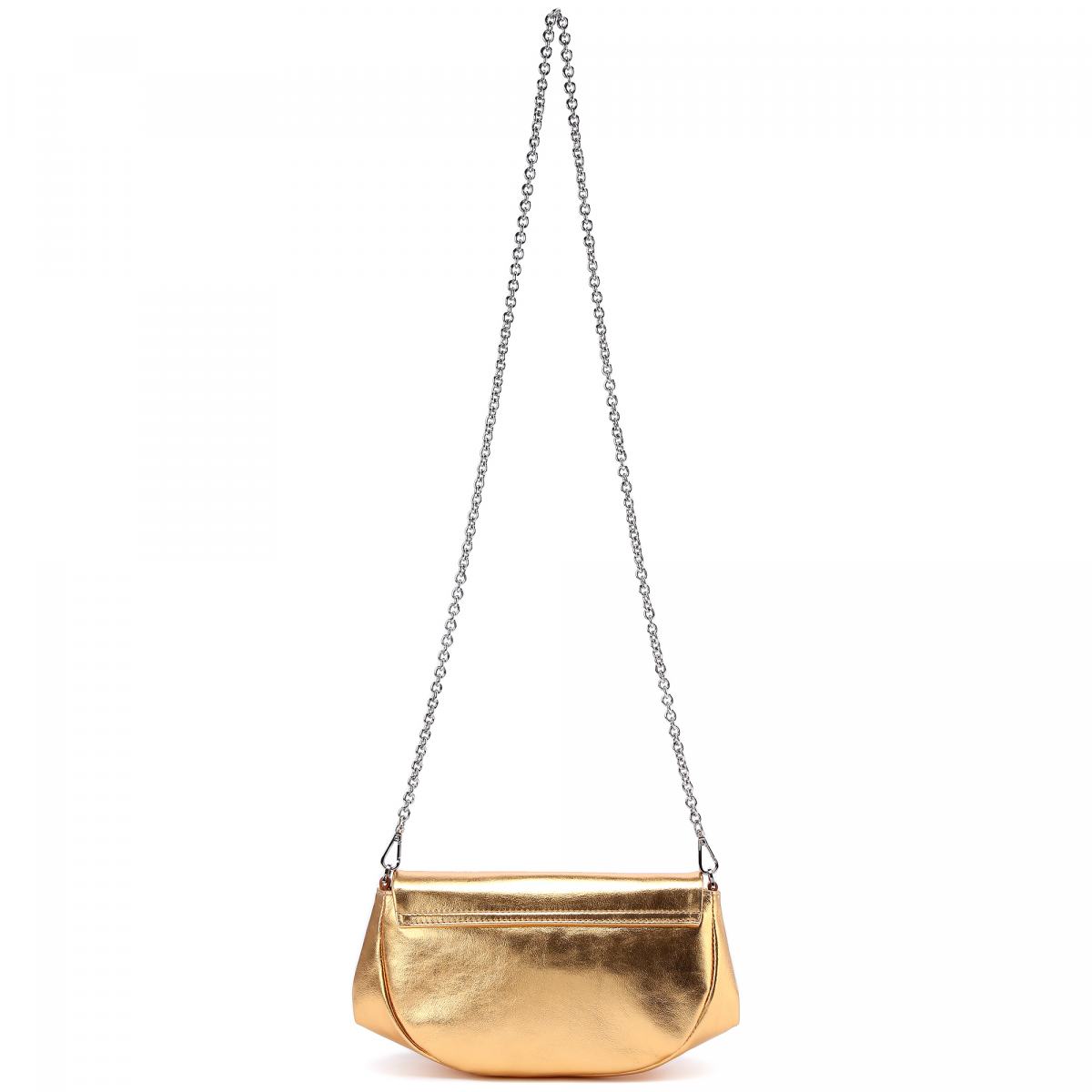 Сумка Adele от Gianni Chiarini Firenze выполнена из гладкой кожи золотого цвета. Модель со съемным плечевым ремнем из металлической цепочки прекрасно впишется в образ для мероприятия. Застежка на магнитную застежку, внутри текстильная подкладка и открытый карман.