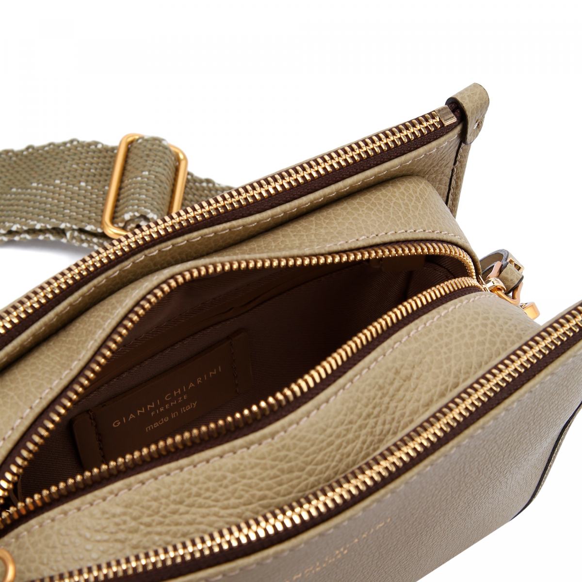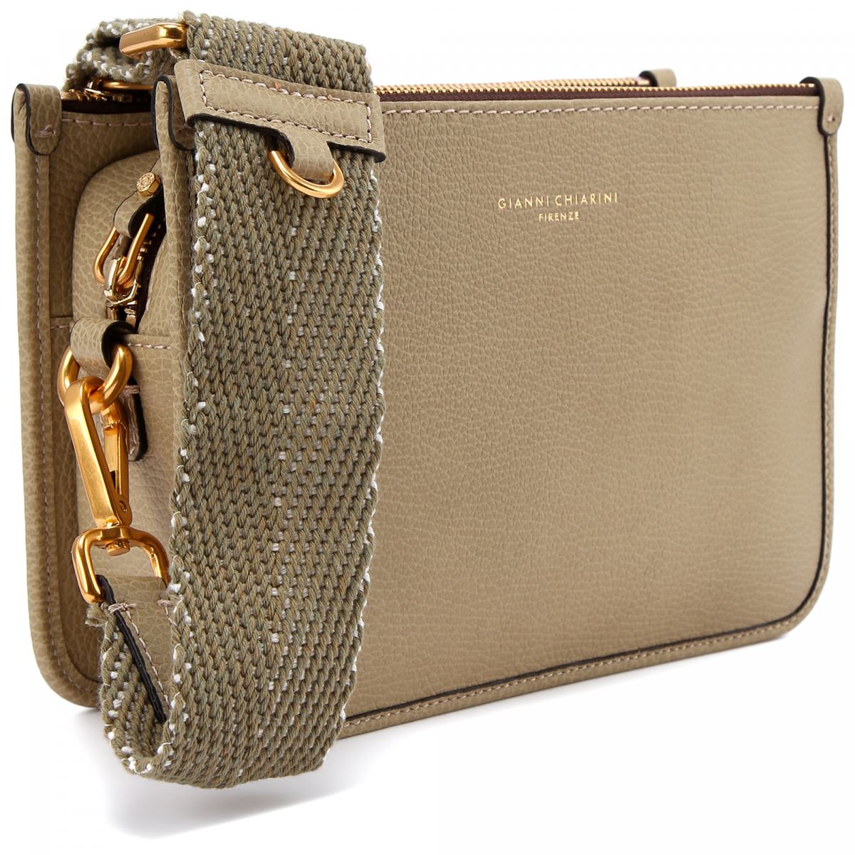 Сумка из натуральной кожи в оливковом цвете от Gianni Chiarini. Сумка Debbie стильной квадратной формы выполнена из чеканной телячьей кожи премиум-класса. Модель дополнена молниями, образующими три вместительных отделения. Съемный регулируемый плечевой ремень из ткани с узором «елочка» позволит носить сумку любым удобным способом.