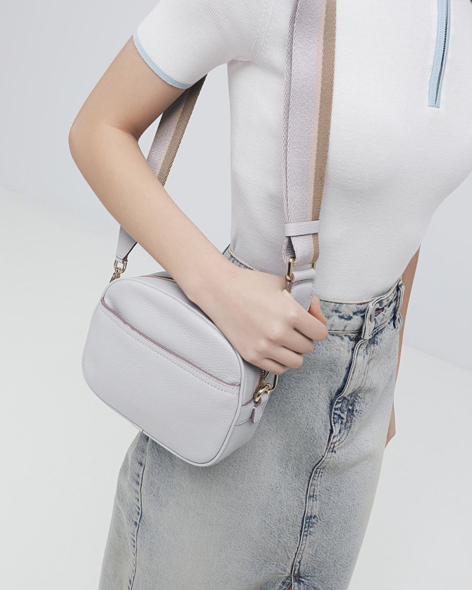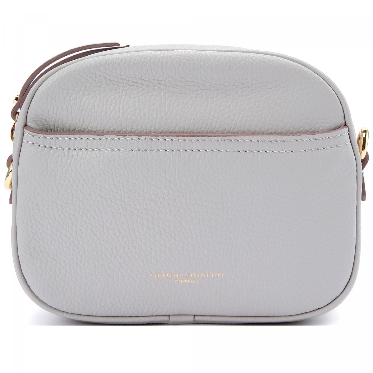 Сумка из натуральной кожи в сером цвете от Gianni Chiarini. Небольшая сумка-тоут выполнена из зернистой натуральной кожи, с комбинированным ремнем, длину которого можно регулировать. Сумка закрывается на молнию, внутри текстильная подкладка и карман на молнии.