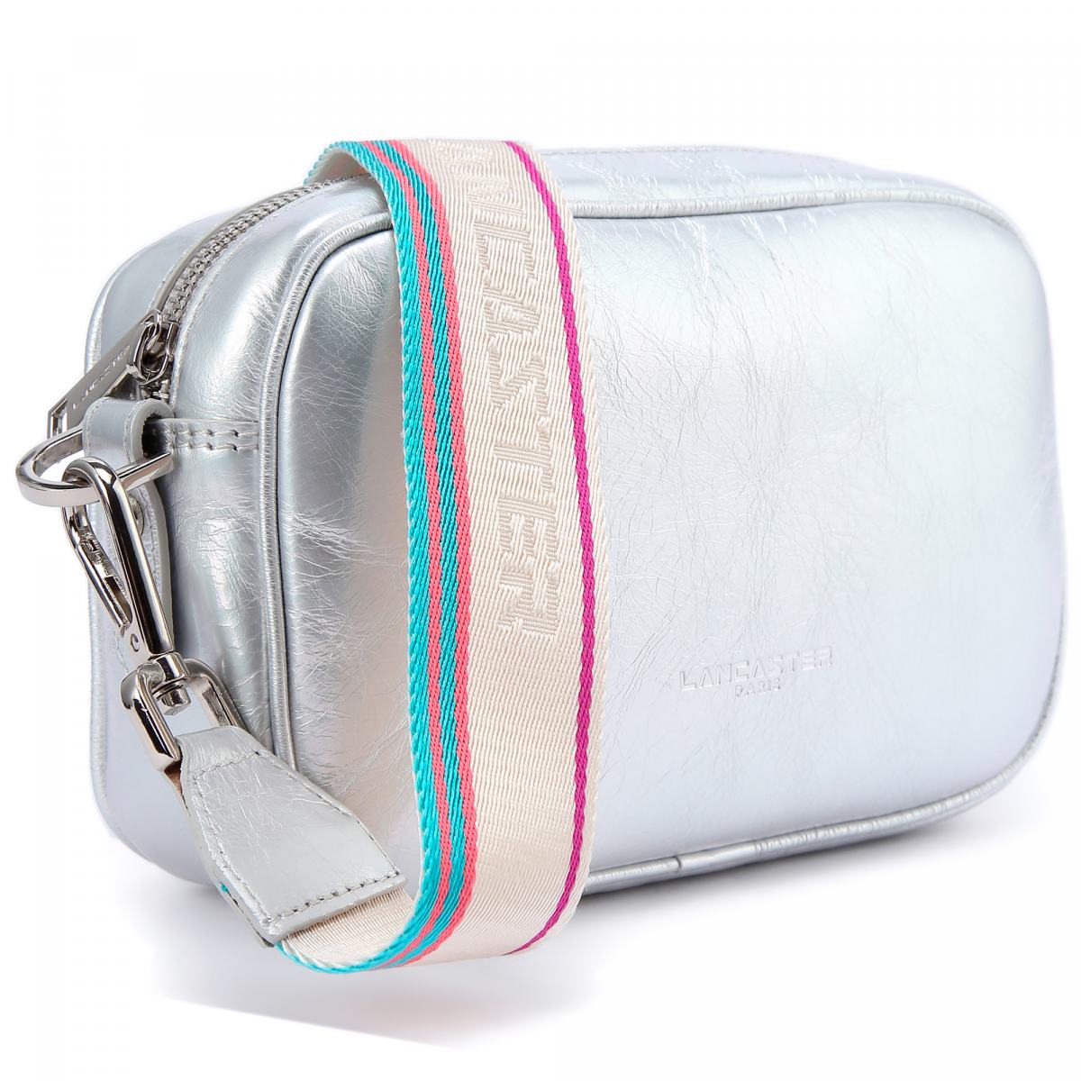 Сумка-тоут из серебристой кожи от Lancaster. Сумка изготовлена из натуральной кожи с металлизированной отделкой. Модель имеет основной карман и внешний карман на молнии. Её можно носить на плече или через плечо, используя текстильный ремень, который крепится на карабины. Внутри фирменная текстильная подкладка и небольшой карман на молнии.