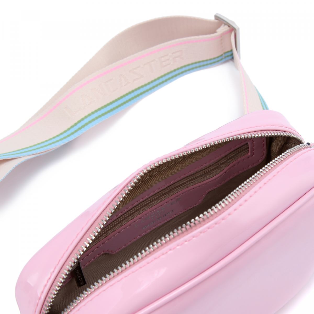 Сумка-тоут в розовом цвете от Lancaster. Сумка изготовлена из полимерного материала с зеркальным эффектом. Модель имеет основной карман и внешний карман на молнии. Её можно носить на плече или через плечо, используя текстильный ремень, который крепится на карабины. Внутри фирменная текстильная подкладка и небольшой карман на молнии.