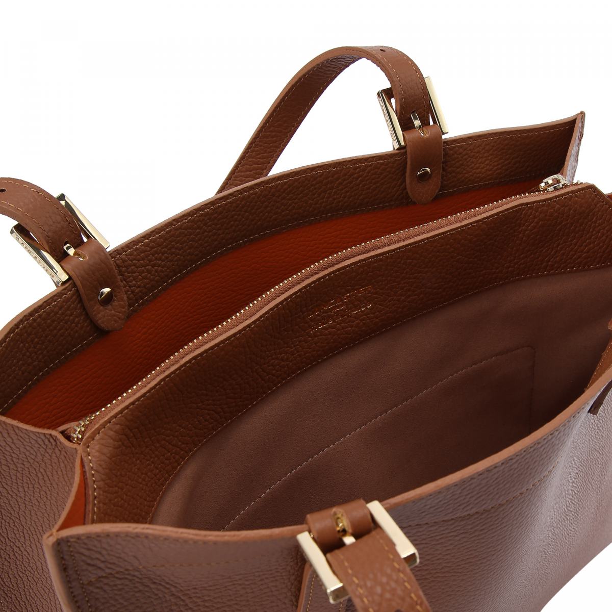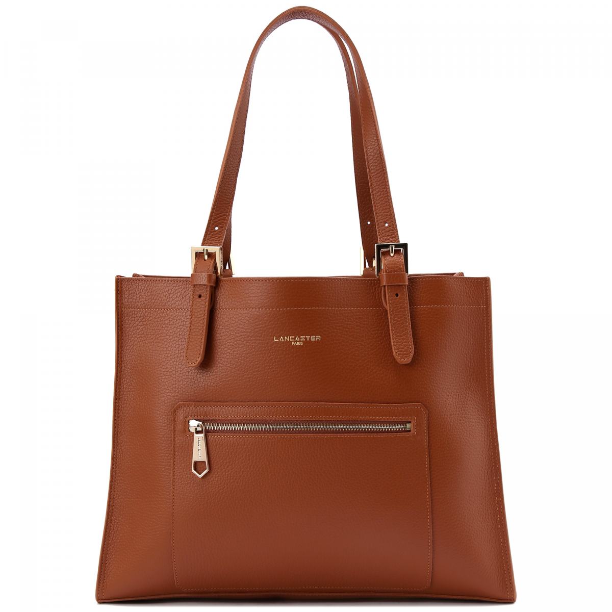 Сумка из натуральной кожи от французского бренда Lancaster. Классическая модель из текстурной кожи коричневого цвета. Ручки выполнена из кожи, длина их регулируется с помощью пряжек. У сумки три отделения, центральной из которых закрывается на молнию, а так же карман на молнии спереди. О принадлежности к бренду говорит тиснёный логотип Lancaster.